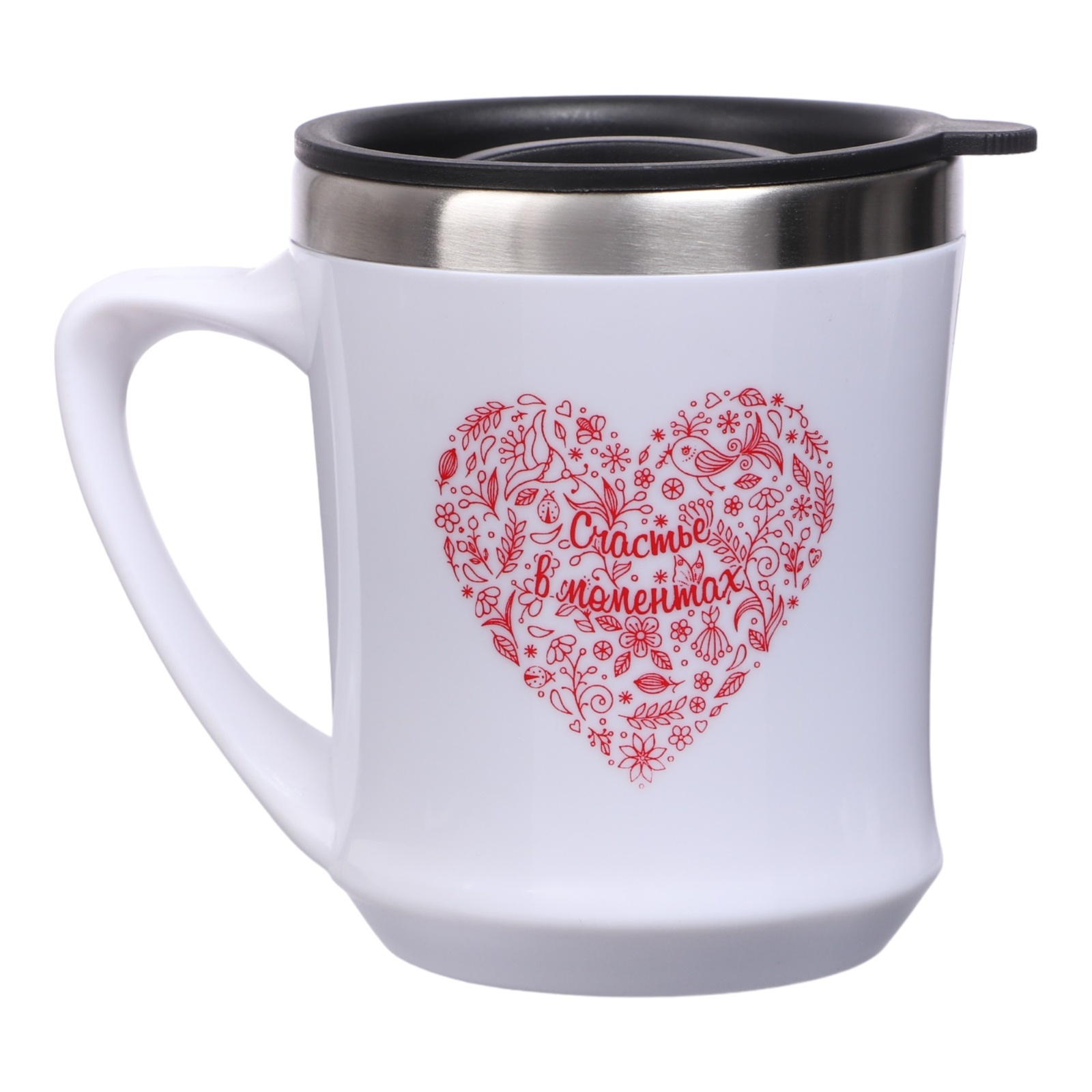 Термокружка, 350 мл, Lifestyle "счастье в моментах", сохраняет тепло 3 ч, белая