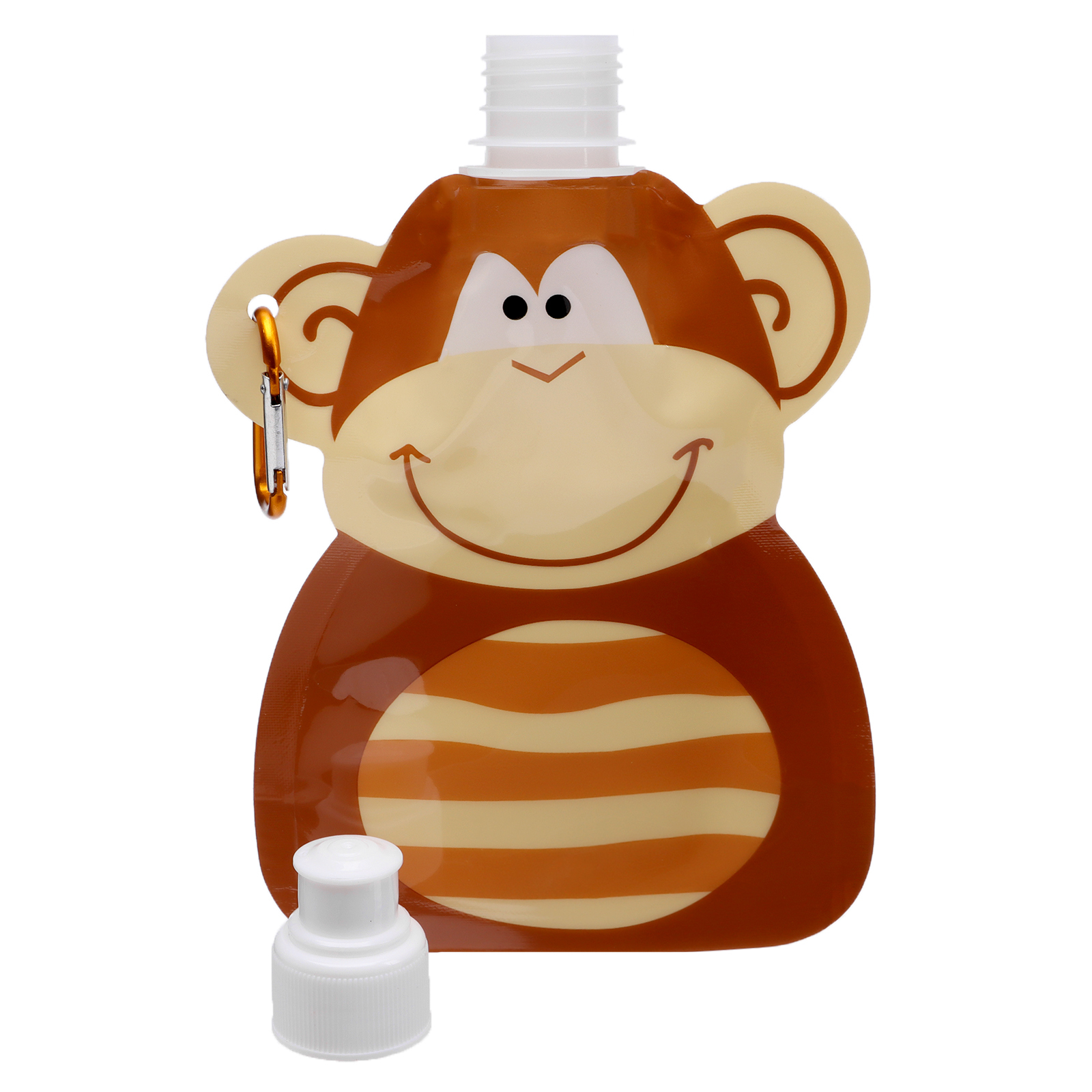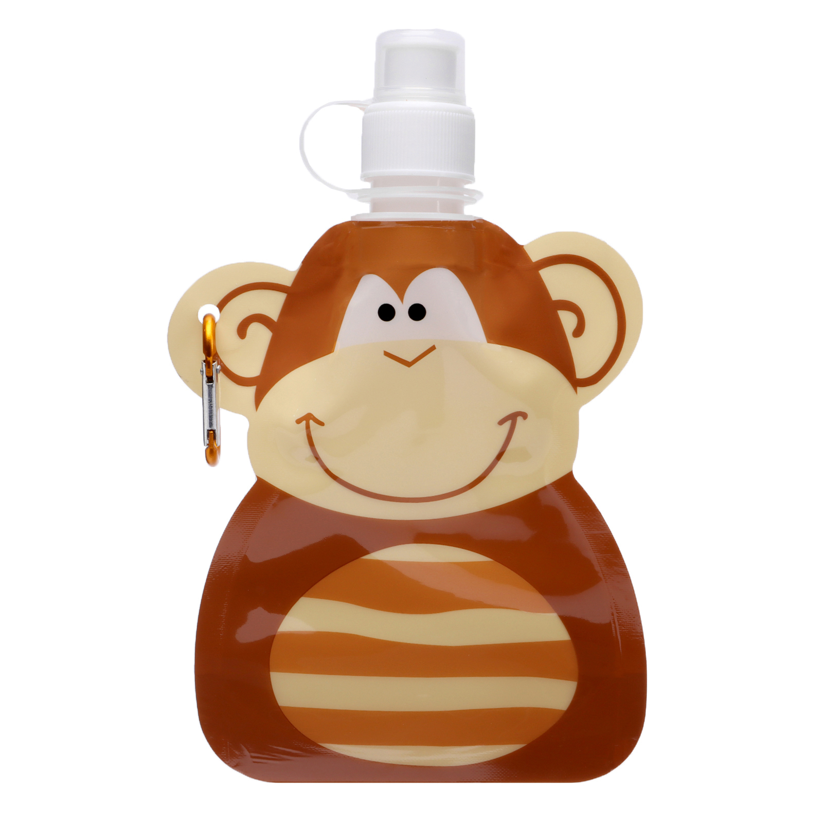 Фляжка для воды детская «обезьянка», 280 мл, 22x12 см. Эту бутылочку для воды удобно брать с собой в спортзал, на прогулку, пикник или работу. Ёмкость, благодаря особой форме, удобно лежит в руке. Крышка плотно закрывает изделие. В бутылке также можно носить морсы, соки и другие прохладительные напитки. Она подойдёт для использования взрослым и детям. Цвет: Коричневый parts count: 0 Объём, мл: 280 Материал: Пластик Вид: Фляжка Можно мыть в посудомоечной машине: Нет Особенности: С креплением Особенности: Складная  развернуть описание ▼