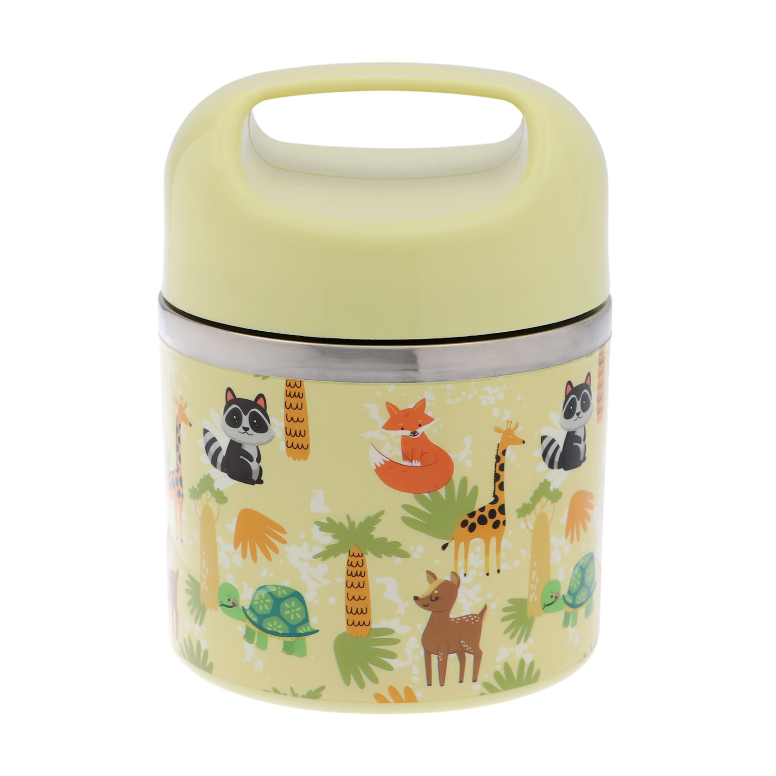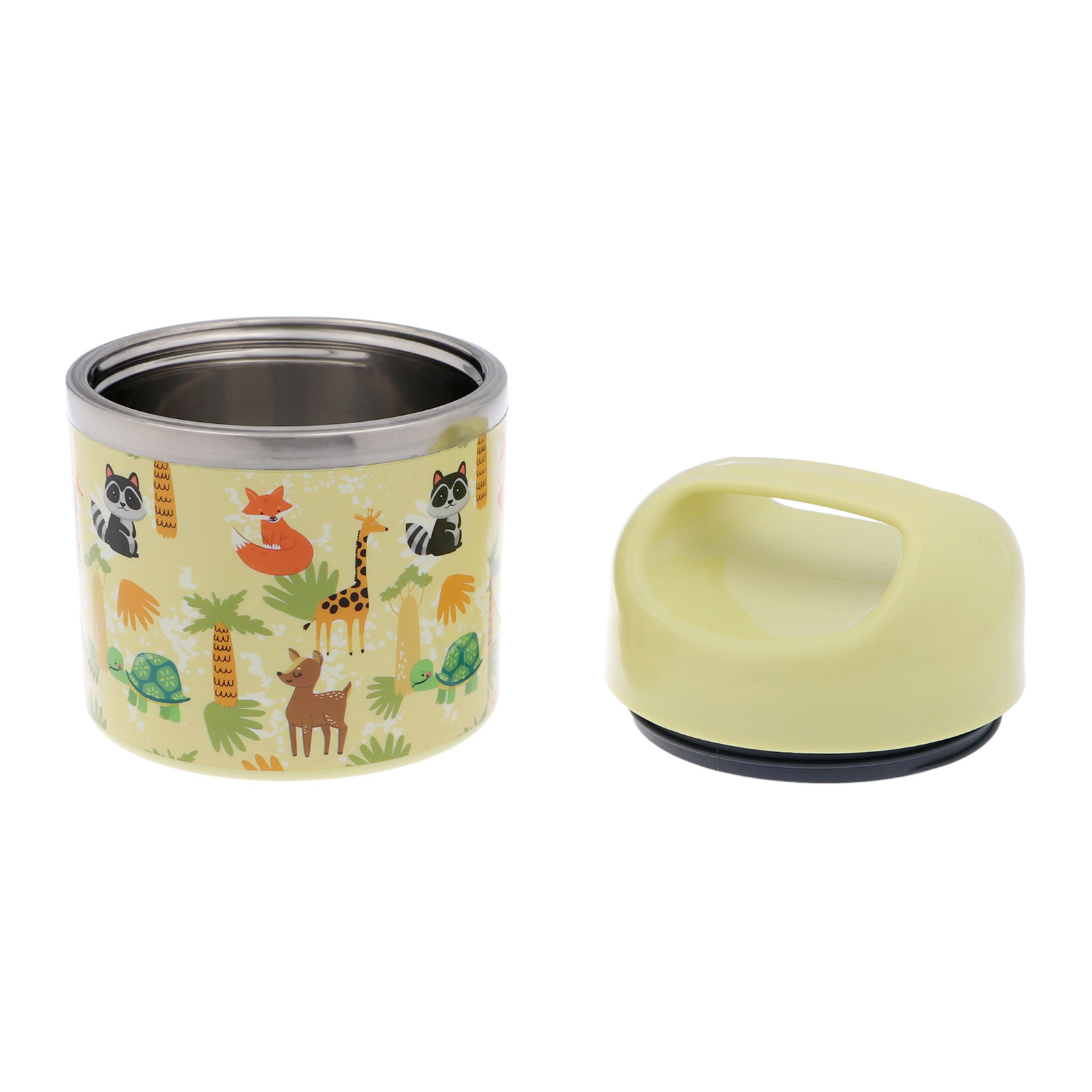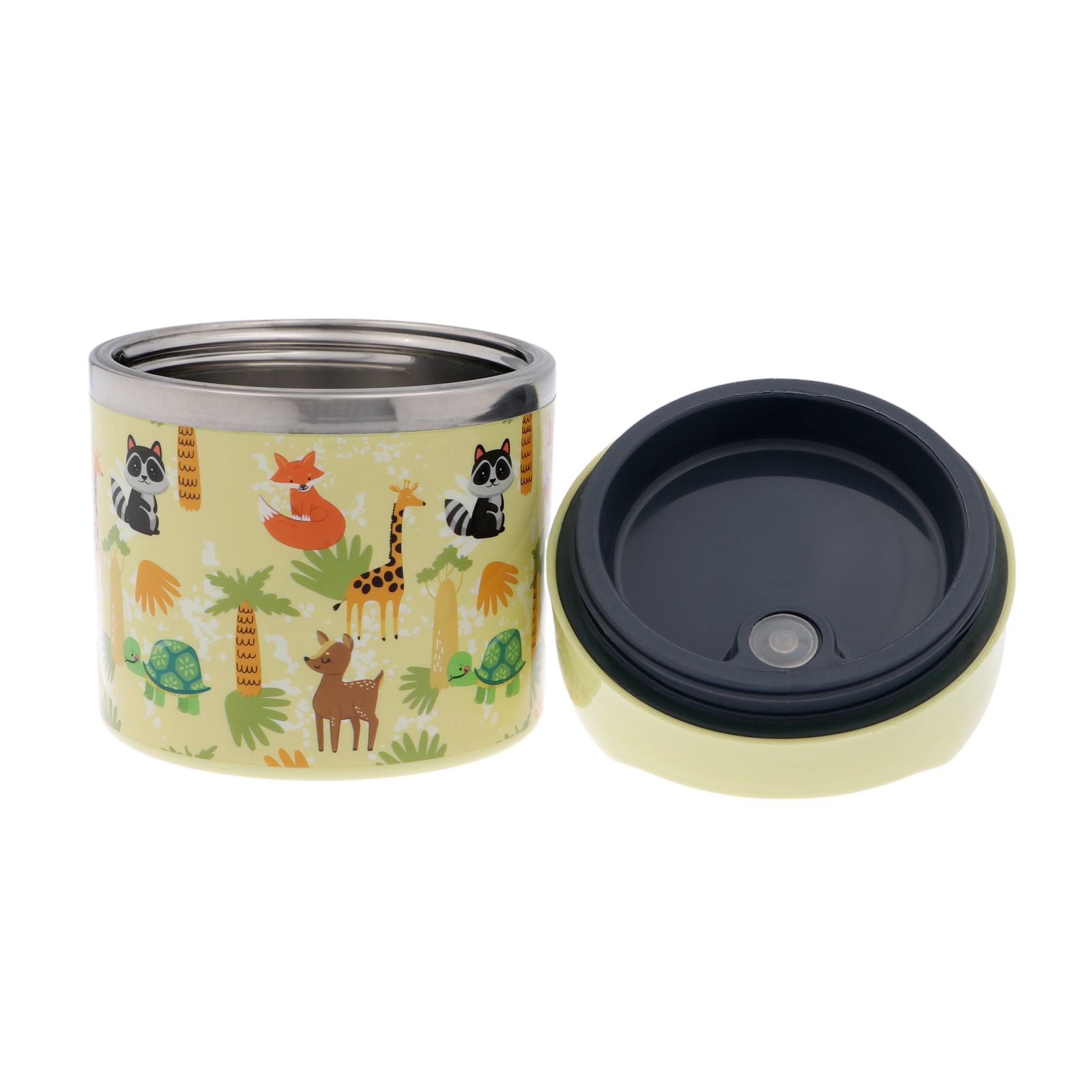 Ланч-бокс "в мире зверей", 630 мл, сохраняет тепло 3 ч, 11 х 15 см, оливковый. Возьмите с собой вкусную домашнюю еду или перекус. В этом вам поможет удобный ланч-бокс для школы или работы. Подходит для детей и взрослых. Компактный, не занимает много места в сумке или рюкзаке. Его легко мыть и хранить. Цвет: Зелёный Форма: Цилиндрическая Время сохранения тепла/холода, ч: 3 Объём, мл: 630 Материал: Нержавеющая сталь Материал: Пластик Герметичная крышка: Да Можно использовать в СВЧ-печи: Нет Форма: Круг, шар, цилиндр  развернуть описание ▼