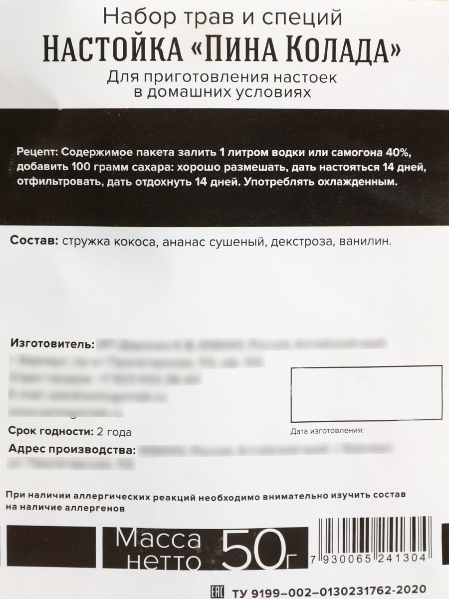 Подарочный набор для приготовления настойки «пина колада», набор специй, штоф