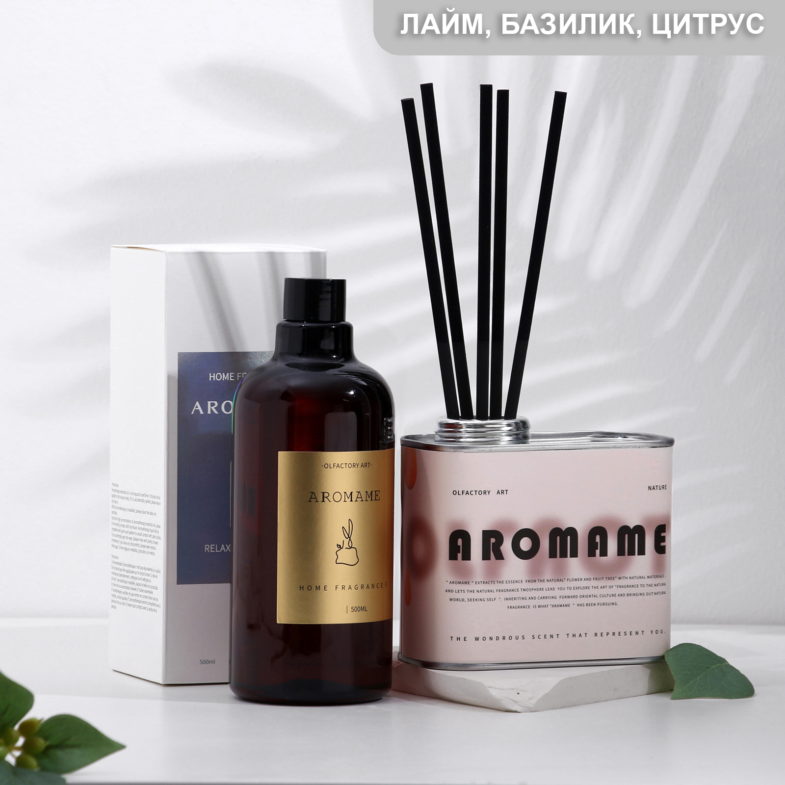 Набор диффузор ароматический "Aromame", зелёный лайм, базилик, цитрус 500мл прямоуг банка