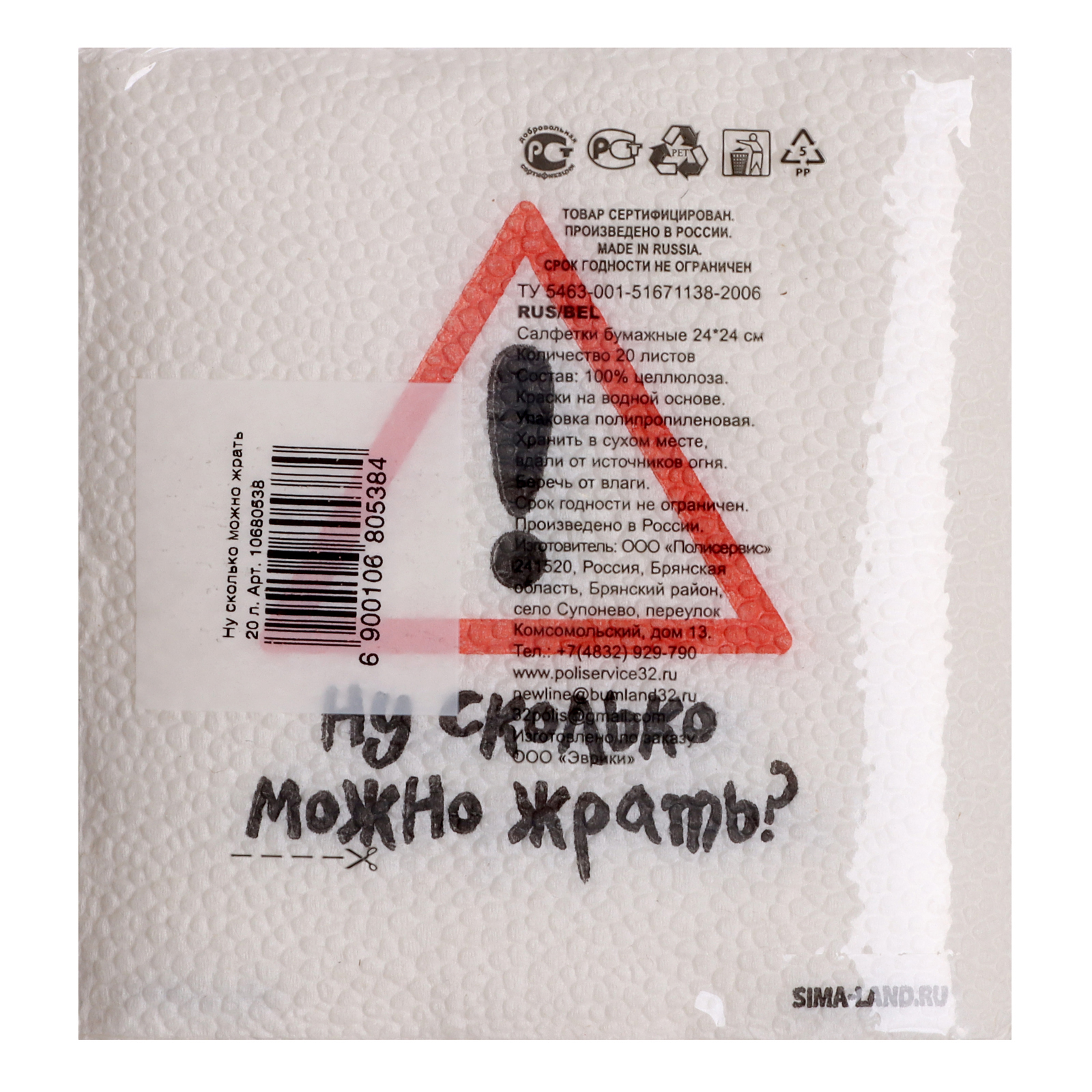 Салфетки бумажные однослойные "ну сколько можно жрать", 24х24 см, набор 20 шт.