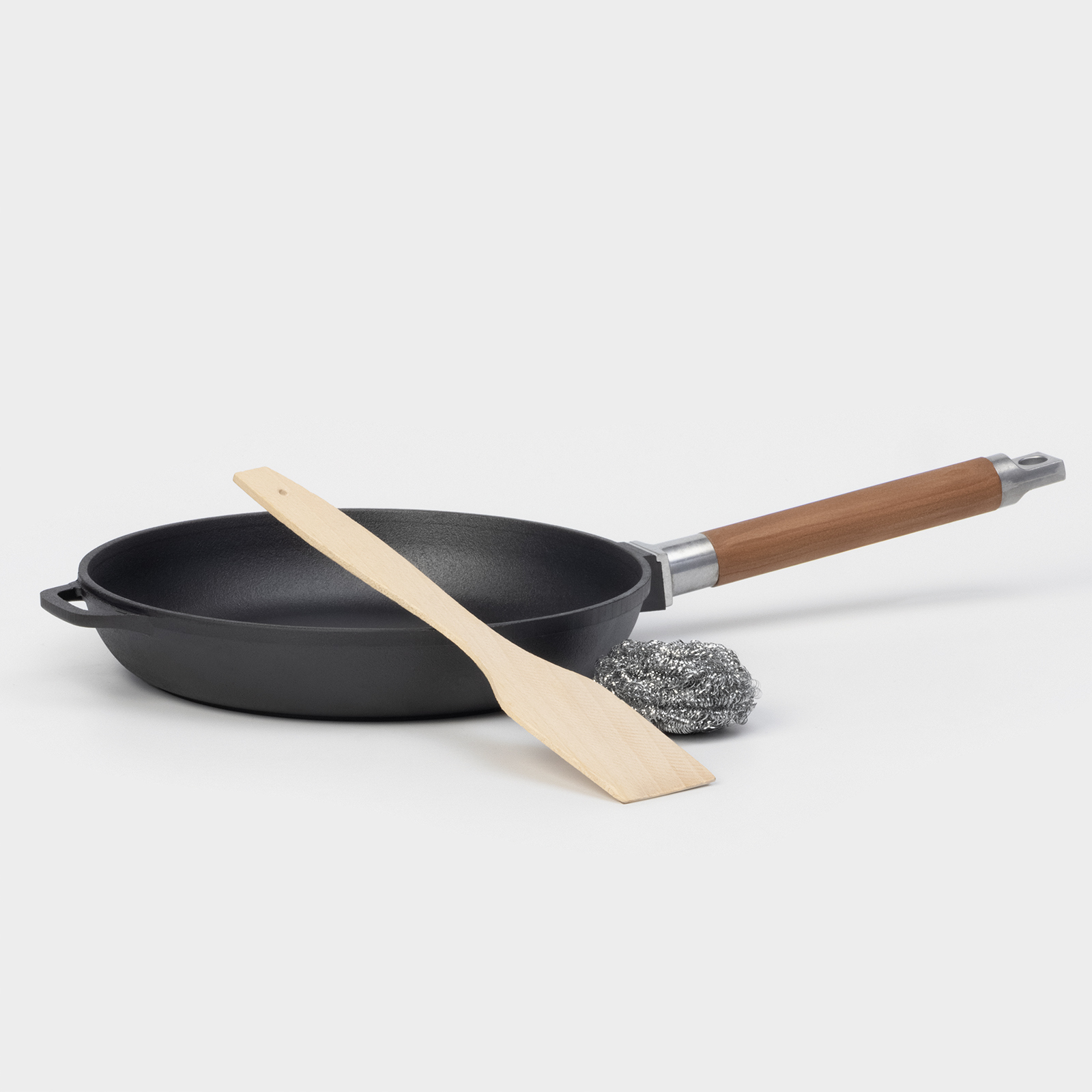 Сковорода чугунная Wild Kitchen, D=24 см, лопатка и губка в комплекте