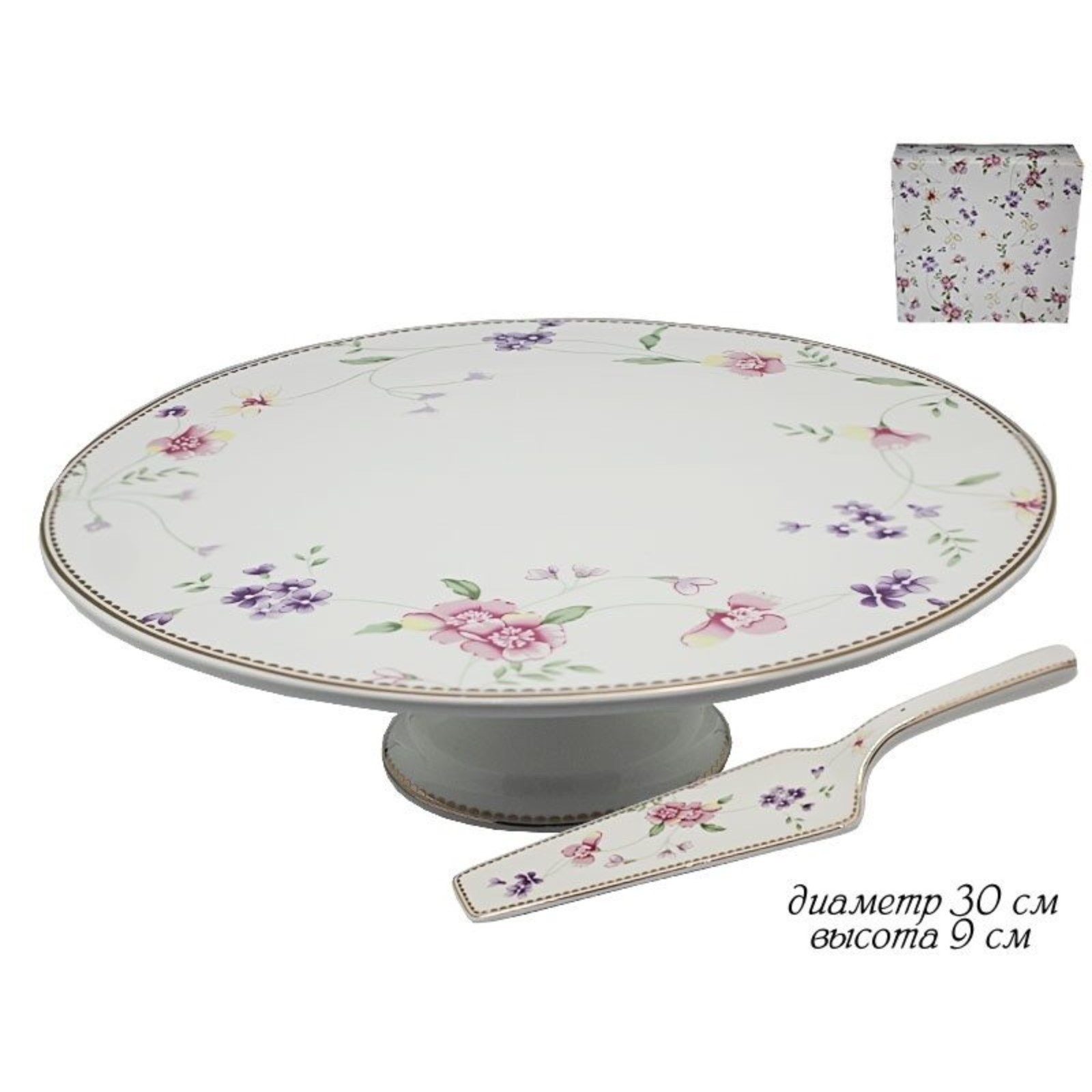 Тортовница с лопаткой Lenardi «флоренс», фарфор, D=30 см