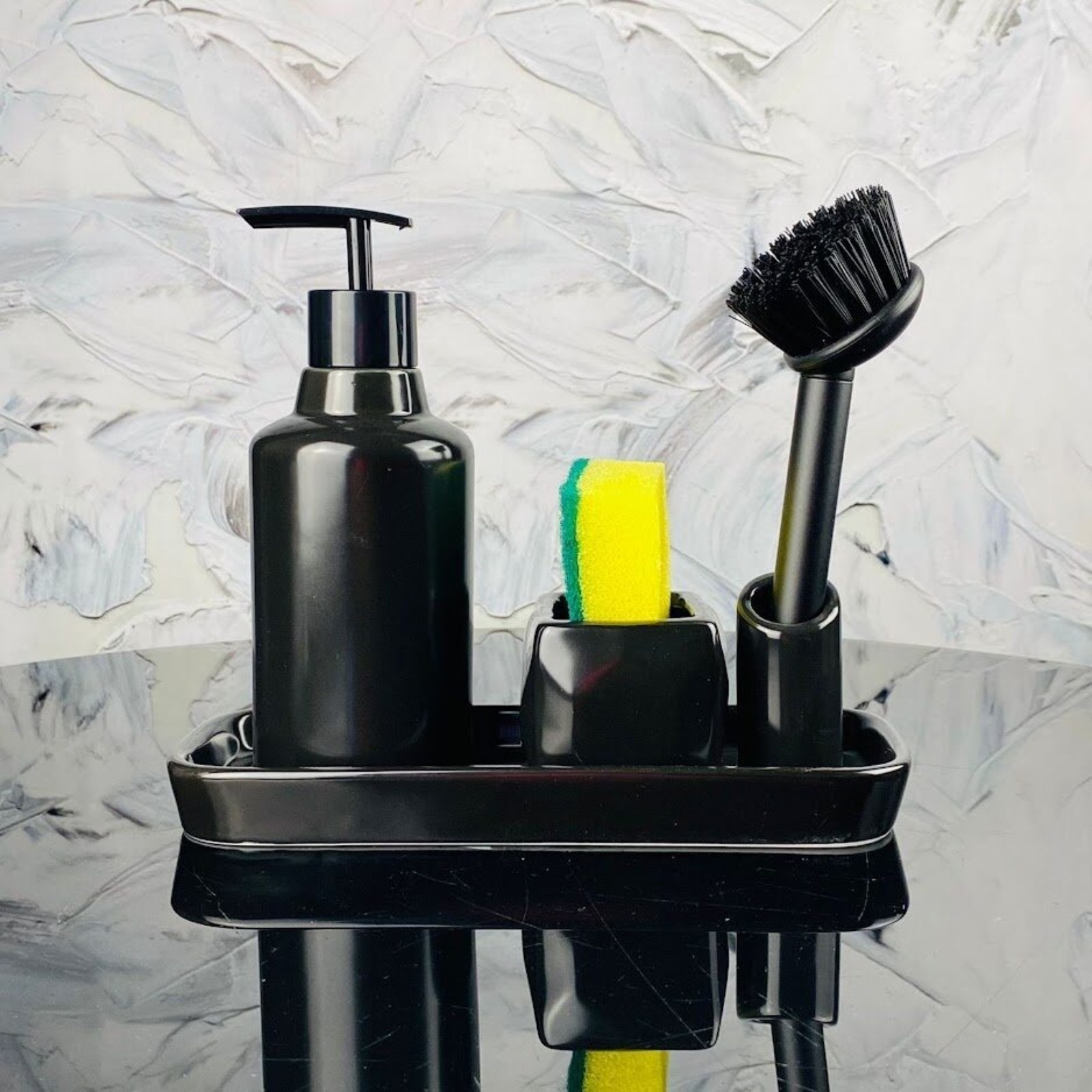 Набор кухонный Lenardi: диспенсер с щёткой и губкой, на подставке, фарфор