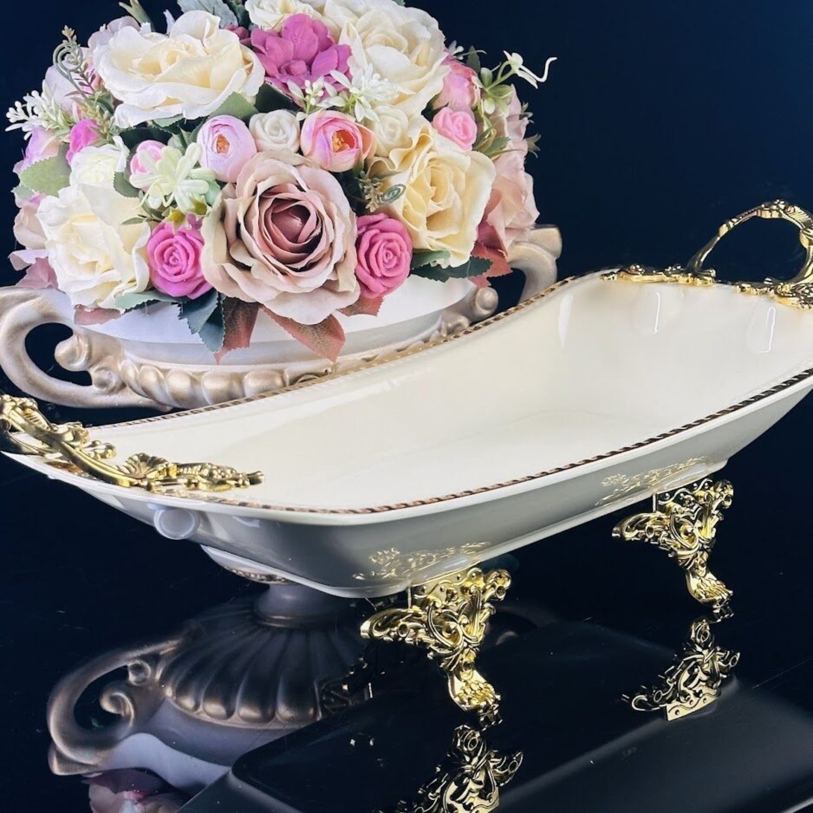 Блюдо с ручками Lenardi, на ножках, фарфор, длина 38 см