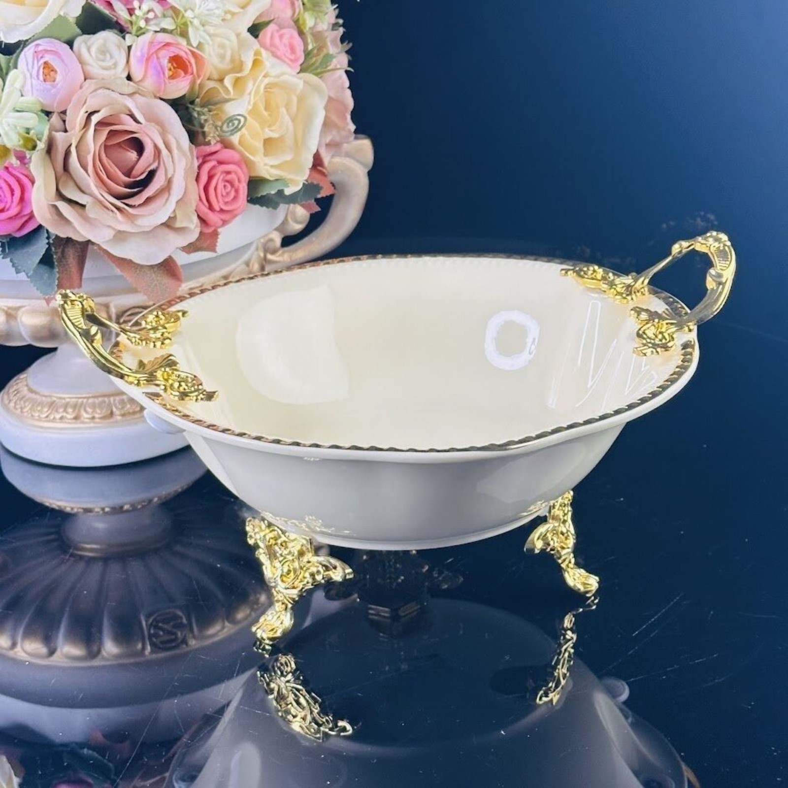 Блюдо глубокое с ручками Lenardi, на ножках, фарфор, D=25 см