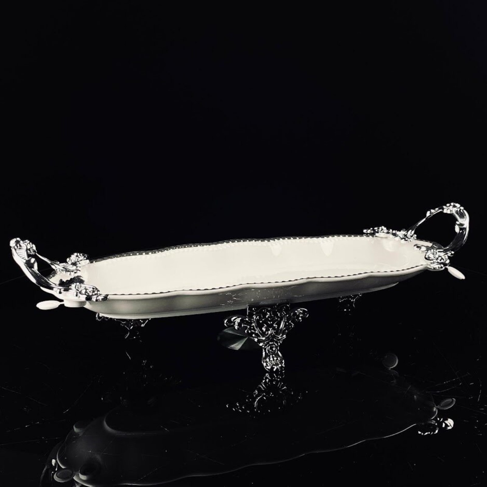 Блюдо с ручками Lenardi Atlantis, на ножках, фарфор, длина 43 см