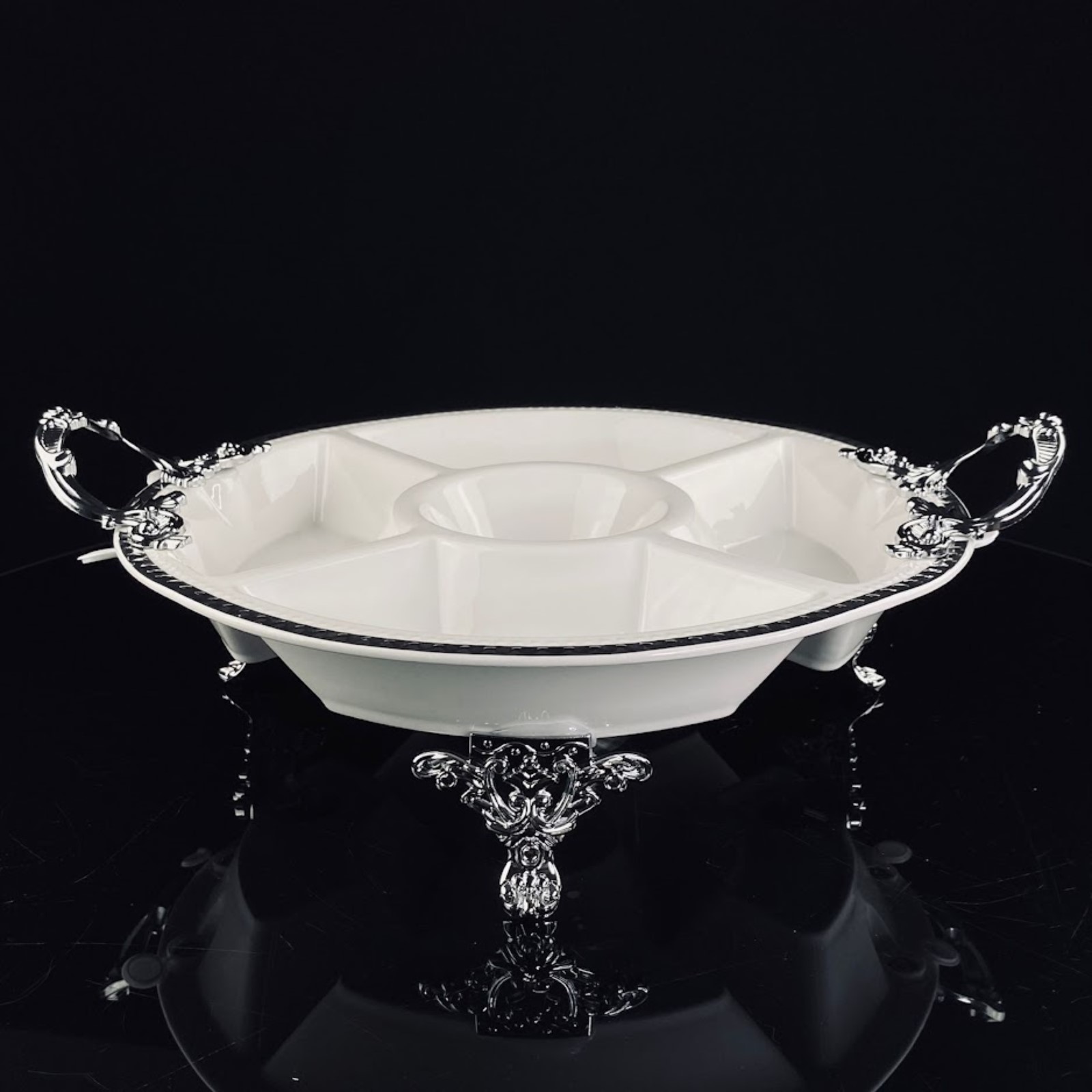 Менажница с ручками Lenardi Atlantis, на ножках, фарфор, D=33 см