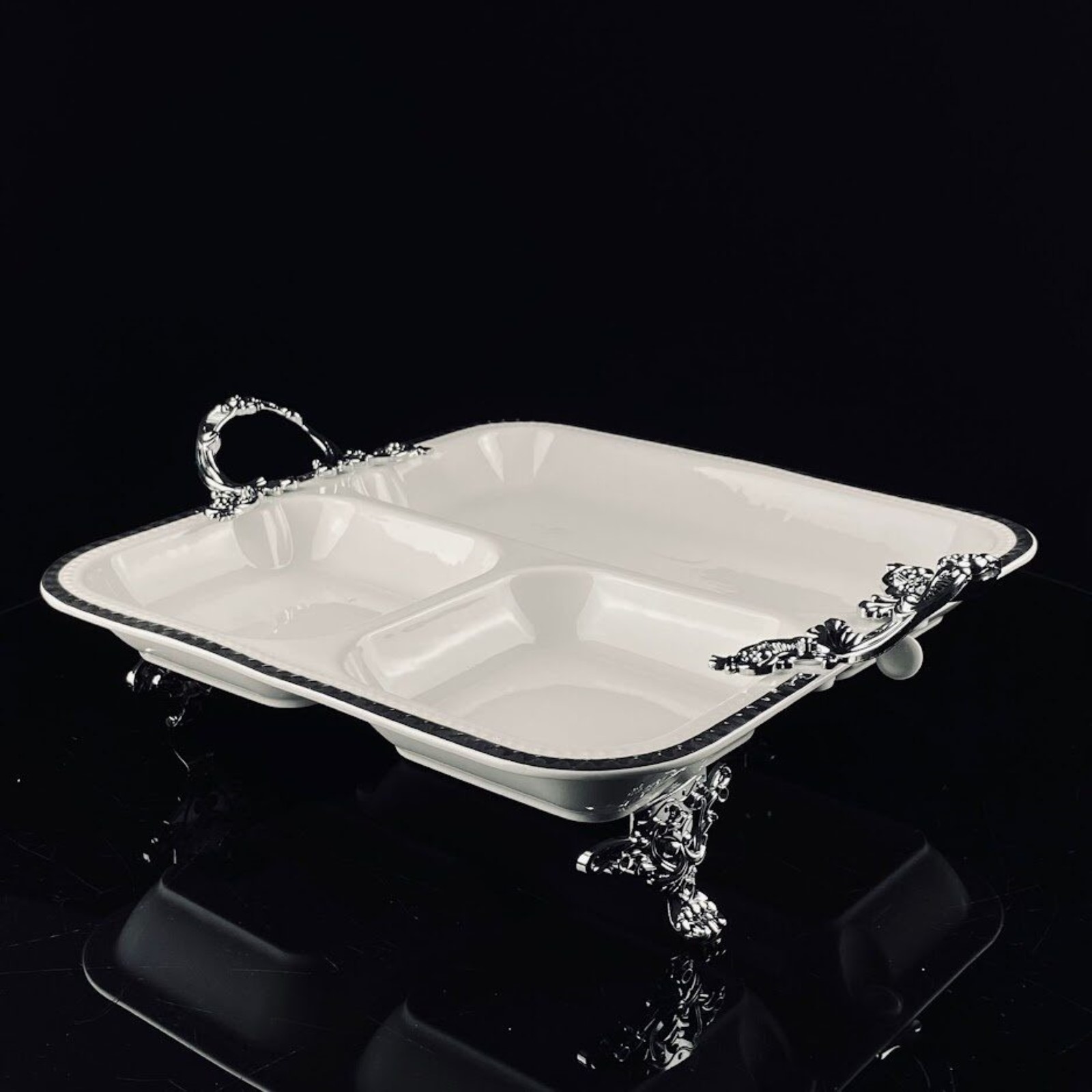 Менажница с ручками Lenardi Atlantis, на ножках, фарфор, длина 33 см
