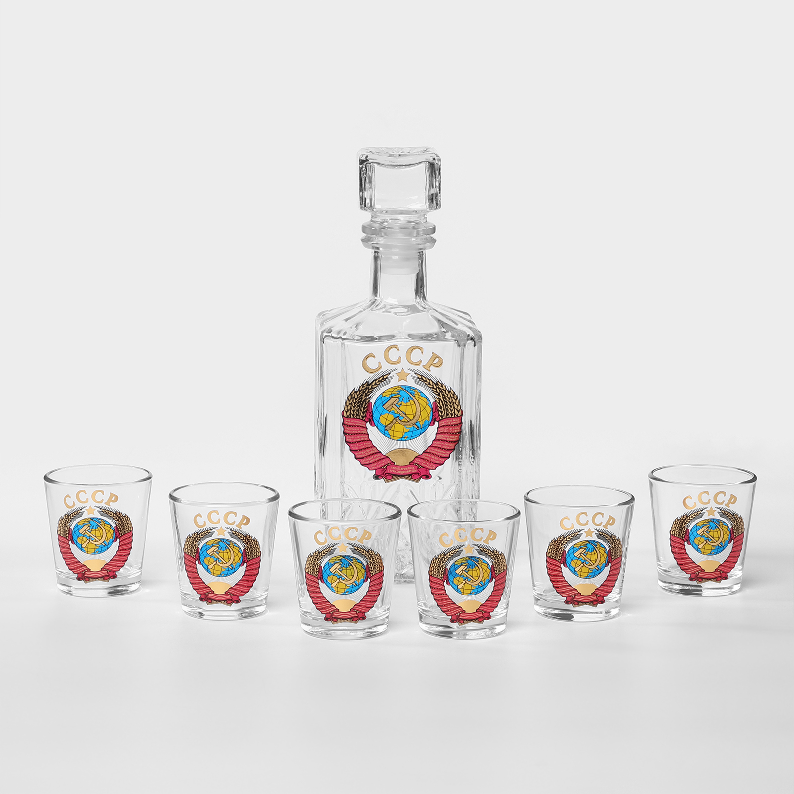 Набор стеклянный для напитков «герб ссср», 7 предметов: графин 500 мл, стопки 50 мл