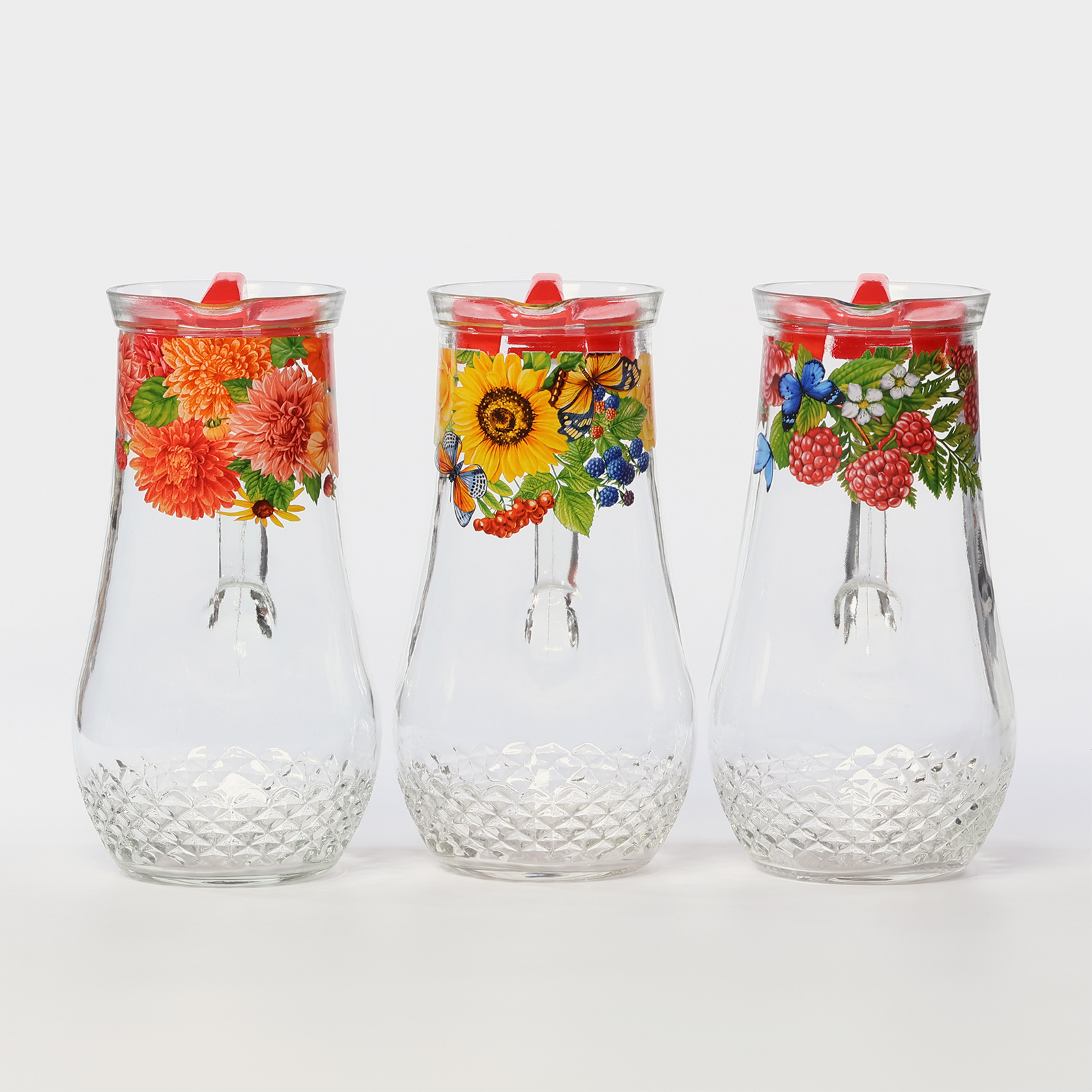 Кувшин стеклянный с крышкой, 1,2 л, микс