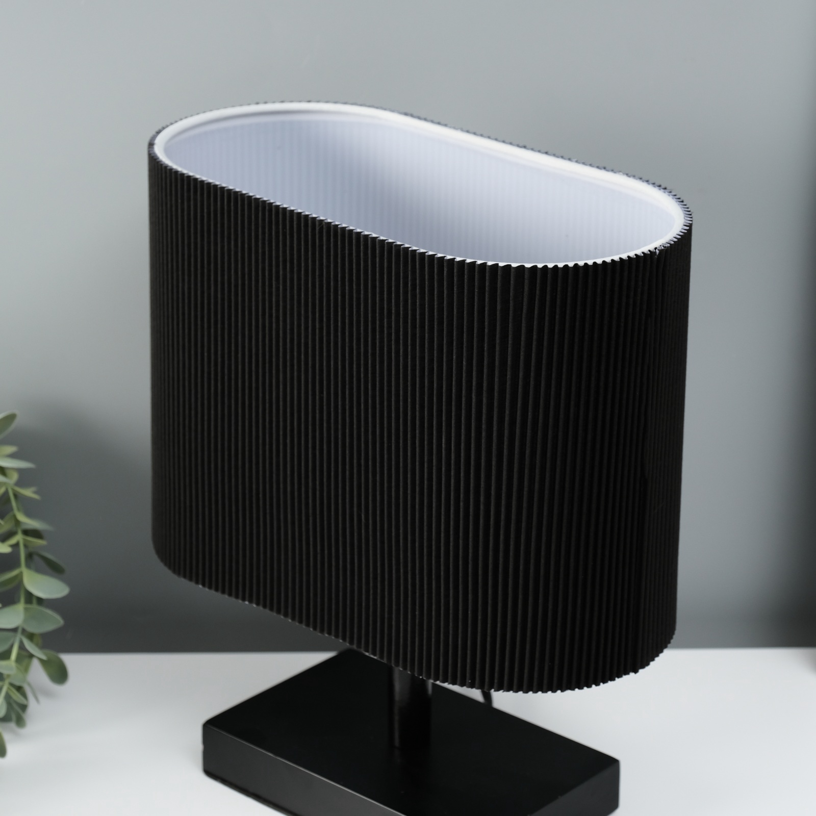 Светильник настольный «консул» 1 40 вт е27 черный 25 13 29 см. Эта настольная лампа с черным основанием и абажуром станет стильным акцентом в вашем интерьере. Компактные размеры и лаконичный дизайн позволяют легко вписать её в любое пространство, создавая атмосферу уюта и комфорта. Особенности Основание из металла и дерева в черном цвете придаёт изделию современный вид. Овальный абажур из текстиля и пластика обеспечивает мягкое освещение, направленное вверх. Подходит для ламп с цоколем E27 мощностью до 40 Вт, что позволяет выбрать оптимальный источник света. Управление осуществляется через выключатель на проводе, что делает использование удобным. Компактные размеры (25 см x 13 см x 29 см) позволяют легко разместить лампу на столе или тумбочке. Создайте уютное пространство Эта лампа не только освещает, но и добавляет стильный акцент в интерьер. Она идеально подходит для чтения, работы или отдыха, создавая атмосферу спокойствия. Выберите её для вашего дома, чтобы сделать пространство более гармоничным и привлекательным. Вид лампы:Накаливания|Количество ламп:1|Цоколь:E27|Длина, см:25|Ширина, см:13|Высота, см:29|Гарантийный срок, мес.:24|Мощность на цоколь, Вт:40|Материал основания:Металл|Материал основания:Дерево|Цвет основания:Чёрный|Тип рассеивателя:Абажур|Особенности светильника:Без особенностей|Оттенок рассеивателя:Тёмные тона|Материал рассеивателя:Пластик|Материал рассеивателя:Текстиль|Управление светильником:С выключателем на проводе|Форма рассеивателя:Овал|Направление рассеивателя:Вверх|Цвет рассеивателя:Чёрный|Тип питания:От сети 220 В|Тип источника освещения:Лампа не в комплекте|Страна:Китай  развернуть описание ▼
