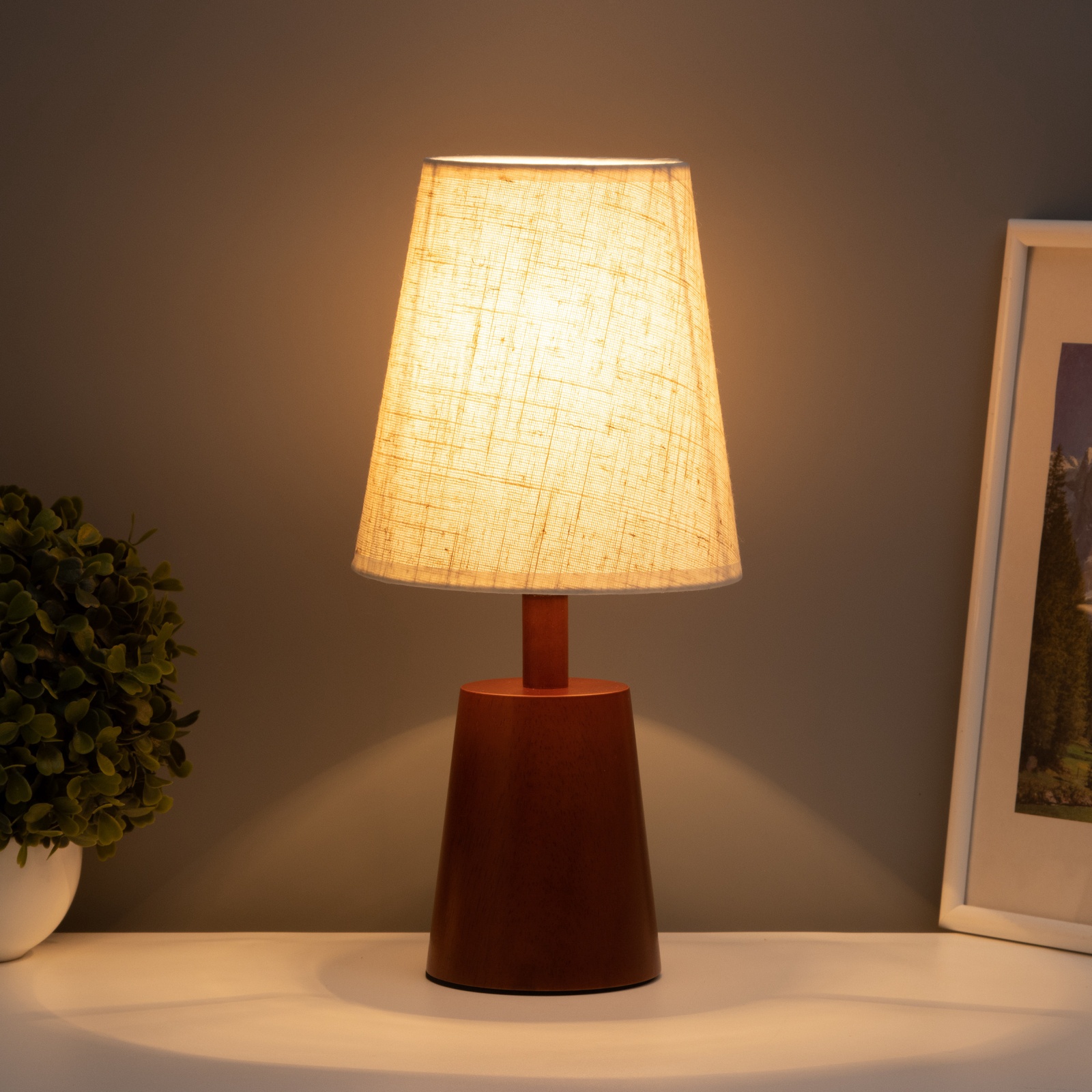 Светильник настольный «индия» 1 40 вт е27 орех 16.5 16.5 35 см. Эта настольная лампа с ореховым основанием и стильным абажуром станет идеальным решением для создания уюта в вашем доме. Её лаконичный дизайн и теплые оттенки добавят атмосферу комфорта в любое пространство. Особенности Деревянное основание в оттенке ореха придаёт изделию элегантный вид и обеспечивает надежность. Трапециевидный абажур из текстиля и пластика создает мягкое, рассеянное освещение, направленное вверх. Подходит для использования с лампами на цоколе E27 мощностью до 40 Вт, что позволяет выбрать оптимальный источник света. Удобное управление осуществляется через выключатель на проводе, что упрощает использование. Компактные размеры (16,5 см x 16,5 см x 35 см) позволяют легко разместить лампу на столе или тумбочке. Создайте атмосферу Эта лампа не только освещает пространство, но и становится стильным акцентом в интерьере. Она идеально подходит для чтения, работы или отдыха, добавляя уют и спокойствие в вашу комнату. Выберите её, чтобы сделать ваше пространство более гармоничным и привлекательным. Вид лампы:Накаливания|Количество ламп:1|Цоколь:E40|Длина, см:16.5|Ширина, см:16.5|Высота, см:35|Гарантийный срок, мес.:24|Мощность на цоколь, Вт:40|Материал основания:Дерево|Цвет основания:Орех|Тип рассеивателя:Абажур|Особенности светильника:Без особенностей|Оттенок рассеивателя:Светлые тона|Форма:Трапеция|Материал рассеивателя:Пластик|Материал рассеивателя:Текстиль|Управление светильником:С выключателем на проводе|Форма рассеивателя:Трапеция|Направление рассеивателя:Вверх|Цвет рассеивателя:Светло-бежевый|Тип питания:От сети 220 В|Тип источника освещения:Лампа не в комплекте|Страна:Китай  развернуть описание ▼