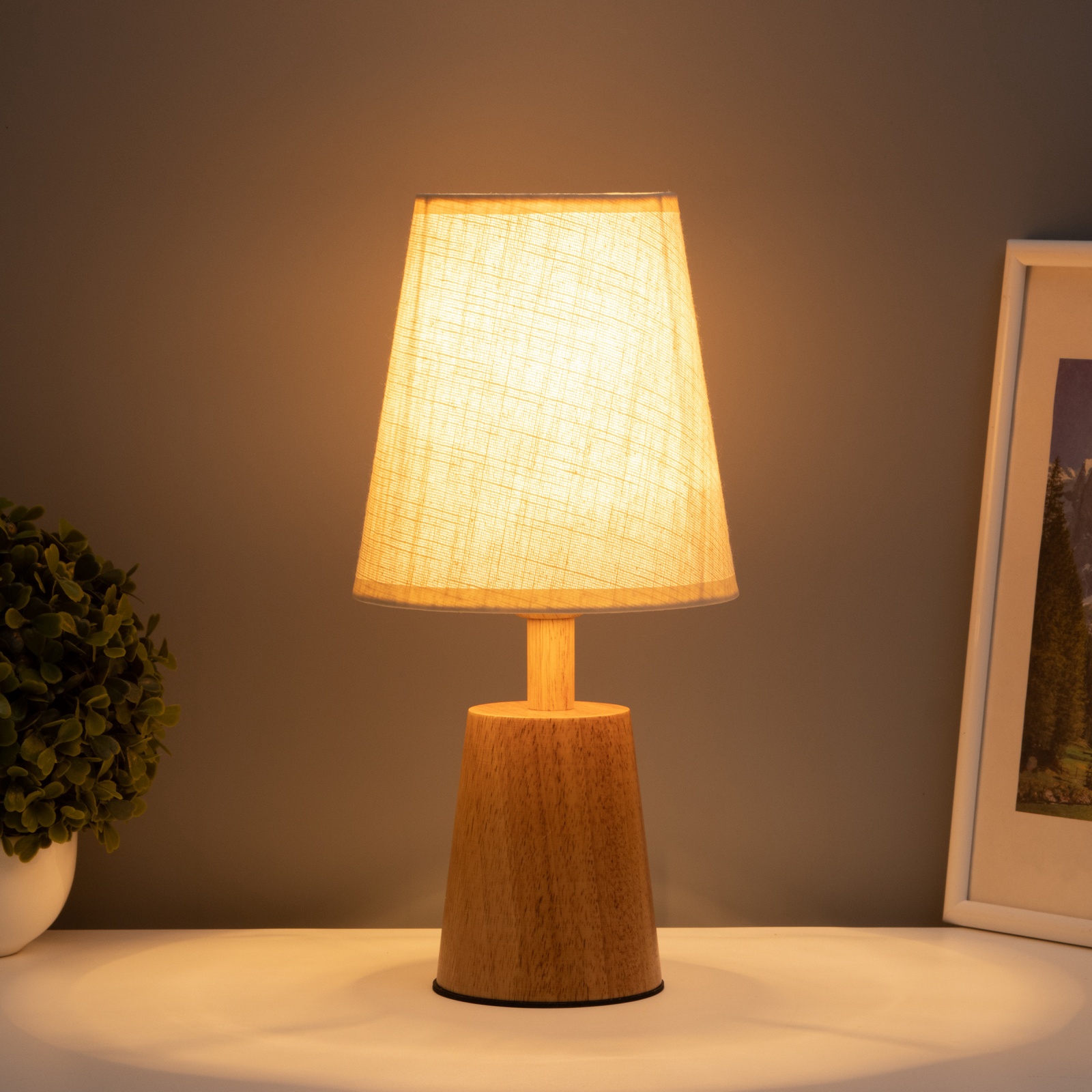 Светильник настольный «индия» 1 40 вт е27 береза 16.5 16.5 35 см. Эта настольная лампа с деревянным основанием и стильным абажуром станет прекрасным дополнением вашего интерьера. Её лаконичный дизайн и теплые тона создают уютную атмосферу в любом помещении. Особенности Деревянное основание светлого бежевого цвета обеспечивает прочность и стильный вид. Трапециевидный абажур из текстиля и пластика создает мягкое освещение, направленное вверх. Совместима с лампами на цоколе E27 мощностью до 40 Вт, что позволяет выбрать подходящий источник света. Управление осуществляется с помощью выключателя на проводе, что обеспечивает удобство в использовании. Компактные размеры (16,5 см x 16,5 см x 35 см) позволяют легко разместить лампу на столе или тумбочке. Создайте уют Эта лампа не только освещает пространство, но и добавляет стиль и комфорт в вашу комнату. Она идеально подходит для чтения, работы или отдыха, создавая атмосферу уюта и спокойствия. Добавьте её в ваше пространство, чтобы сделать его более привлекательным и гармоничным. Вид лампы:Накаливания|Количество ламп:1|Цоколь:E40|Длина, см:16.5|Ширина, см:16.5|Высота, см:35|Гарантийный срок, мес.:24|Мощность на цоколь, Вт:40|Материал основания:Дерево|Цвет основания:Бежевый|Тип рассеивателя:Абажур|Особенности светильника:Без особенностей|Оттенок рассеивателя:Светлые тона|Форма:Трапеция|Материал рассеивателя:Пластик|Материал рассеивателя:Текстиль|Управление светильником:С выключателем на проводе|Форма рассеивателя:Трапеция|Направление рассеивателя:Вверх|Цвет рассеивателя:Светло-бежевый|Тип питания:От сети 220 В|Тип источника освещения:Лампа не в комплекте|Страна:Китай  развернуть описание ▼