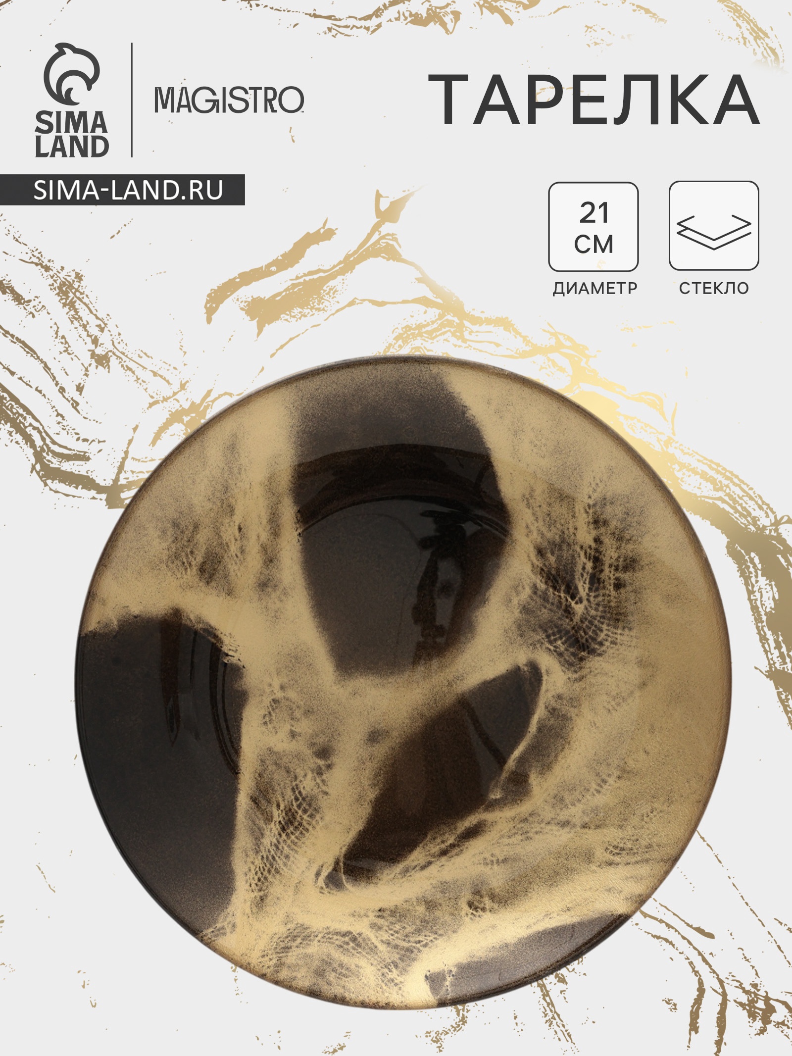 Тарелка Magistro Brown Marble, D=21 см, стекло, коричневая