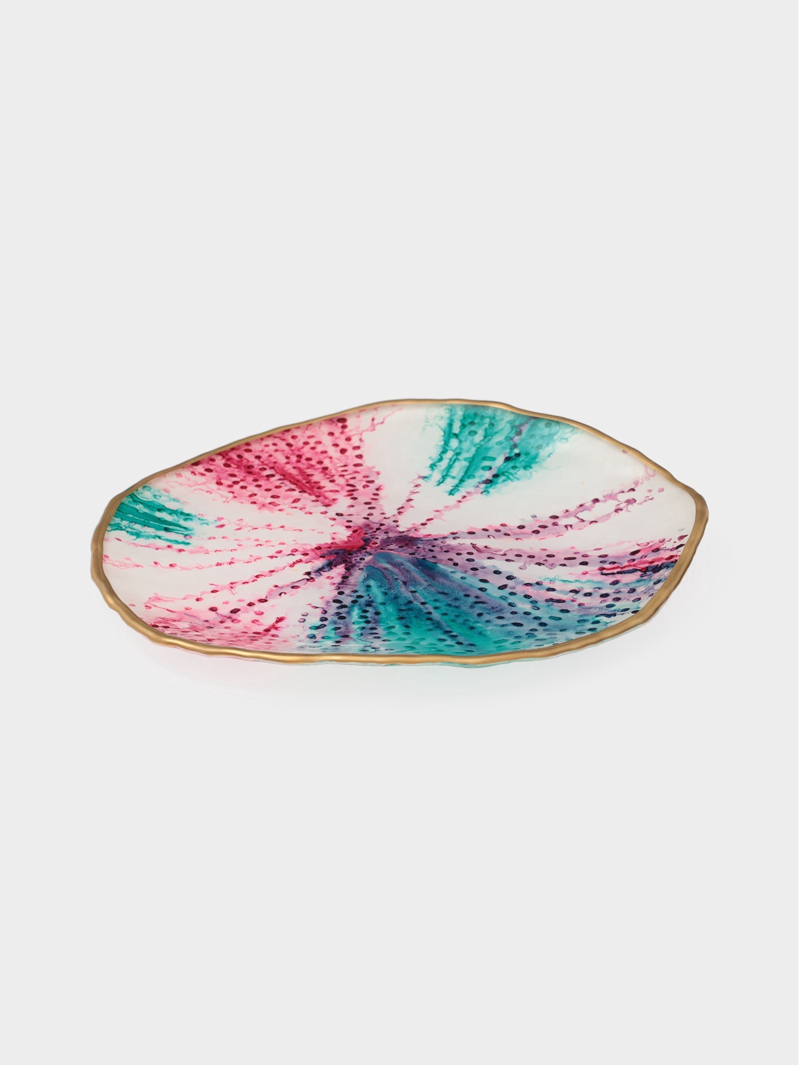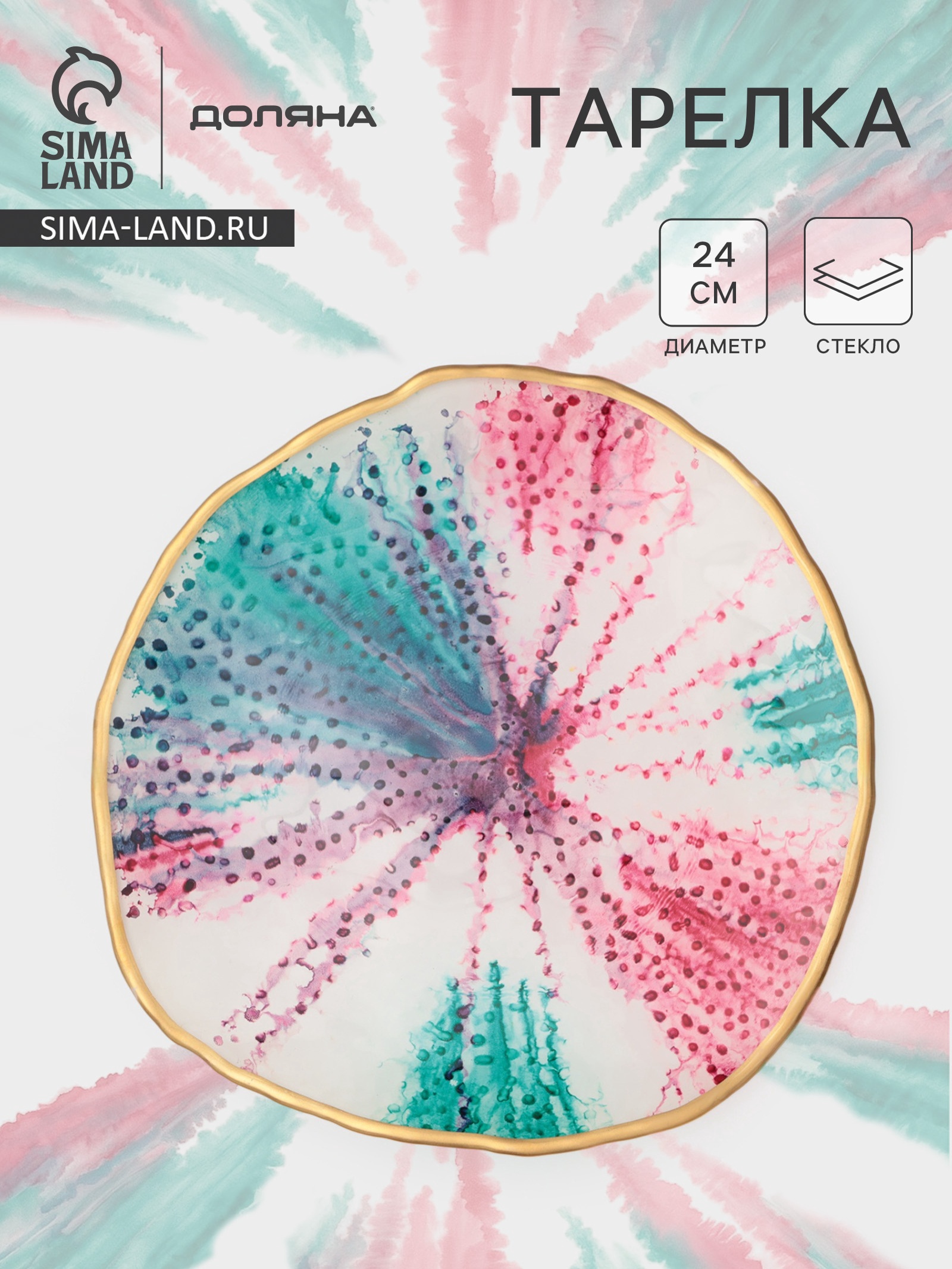 Тарелка доляна Magro, D=24 см, стекло, бирюзово-розовая