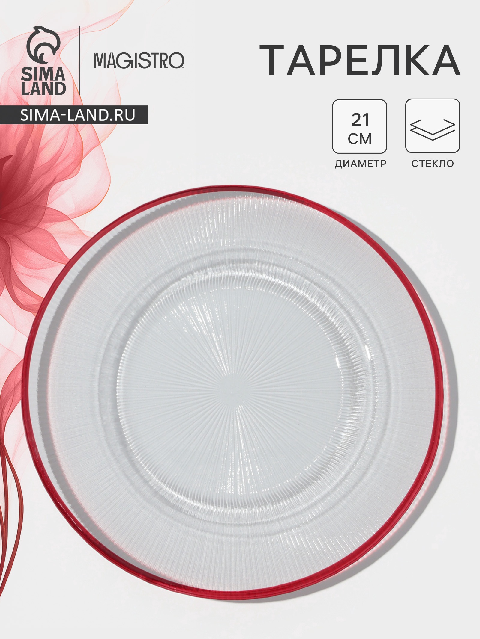 Тарелка Magistro Radiant, D=21 см, стекло, прозрачная