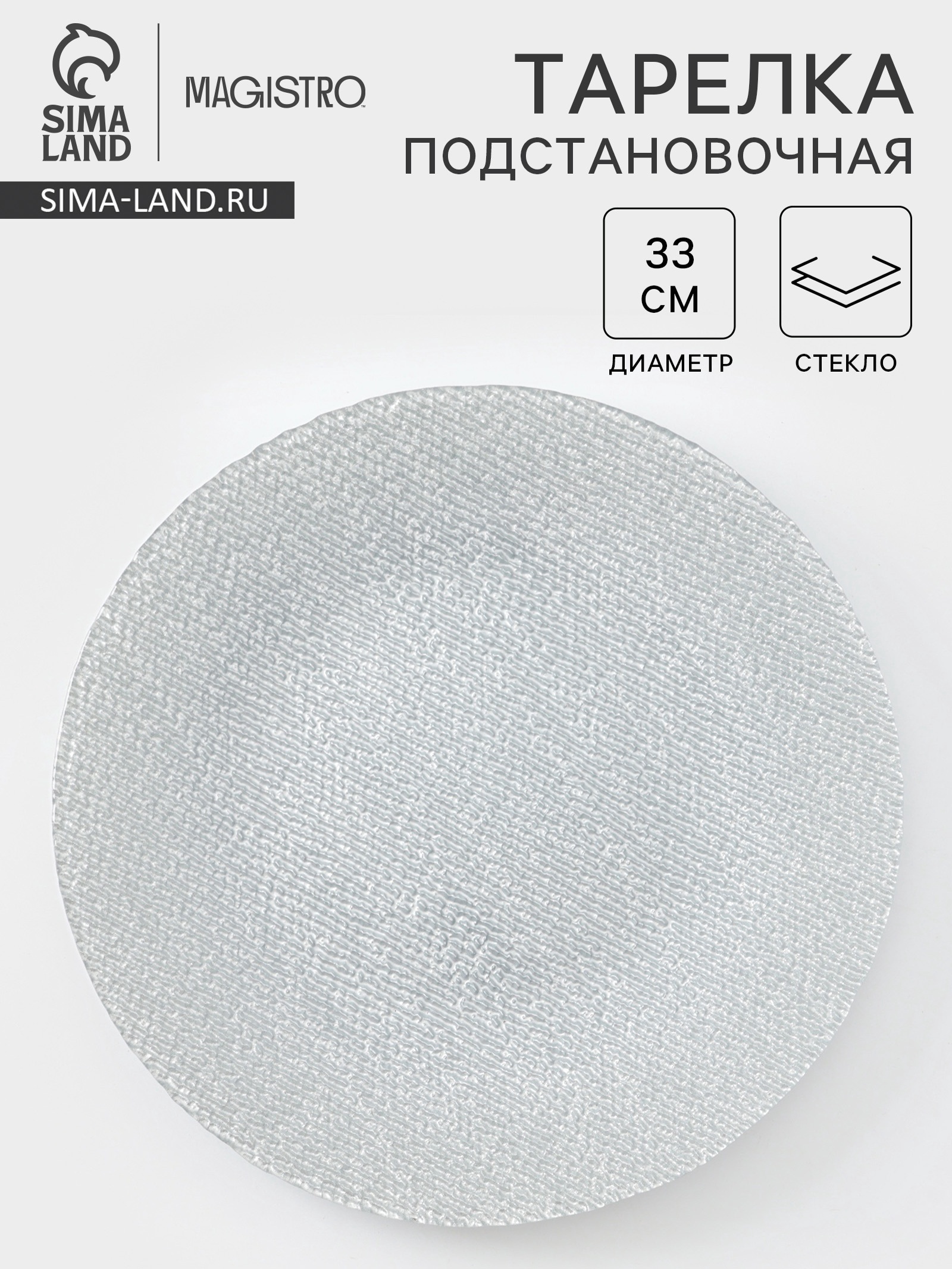 Тарелка подстановочная Magistro Cotton, D=33 см, стекло, серебристая