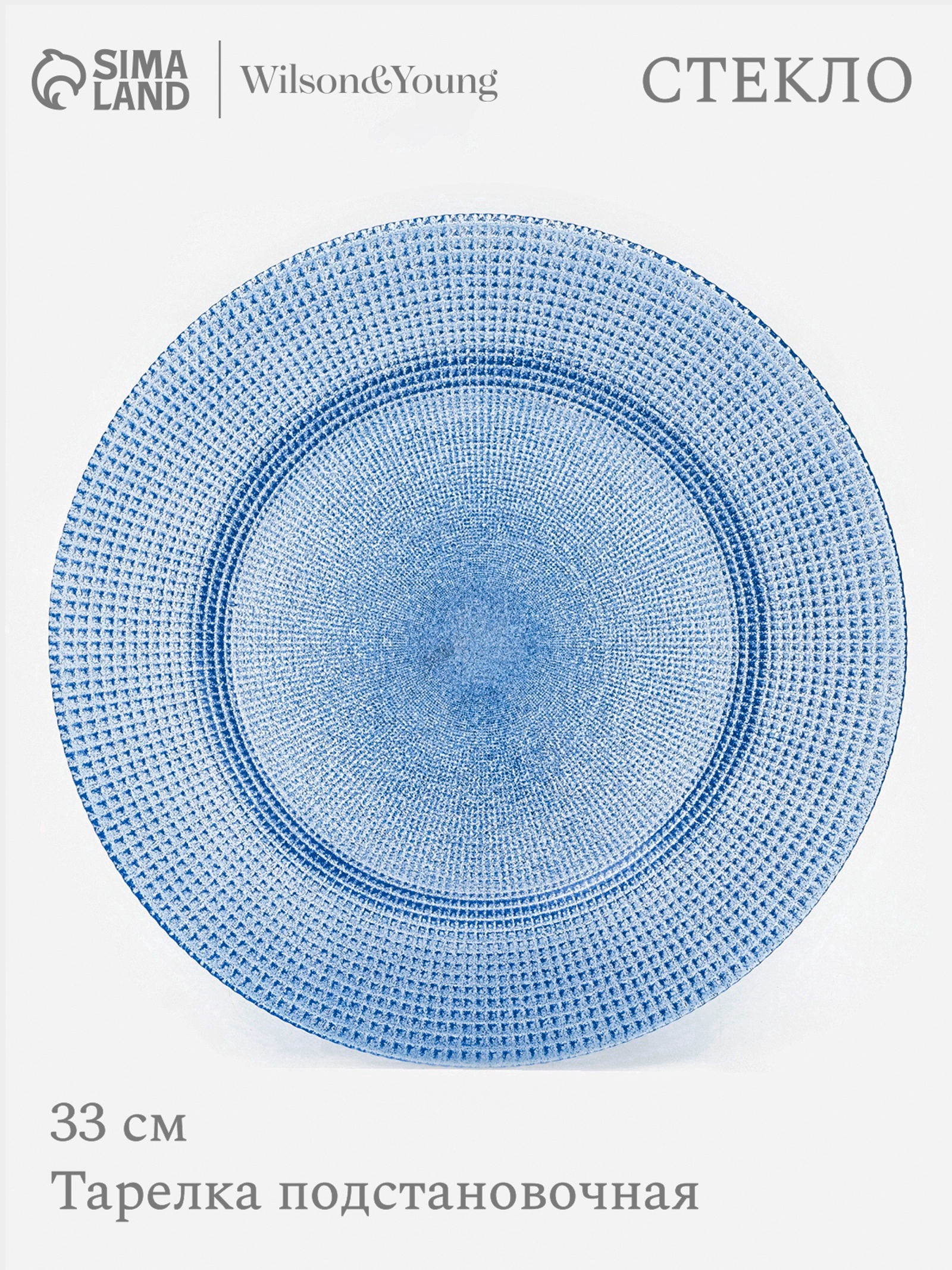 Тарелка подстановочная Wy, D=33 см, стекло, голубая