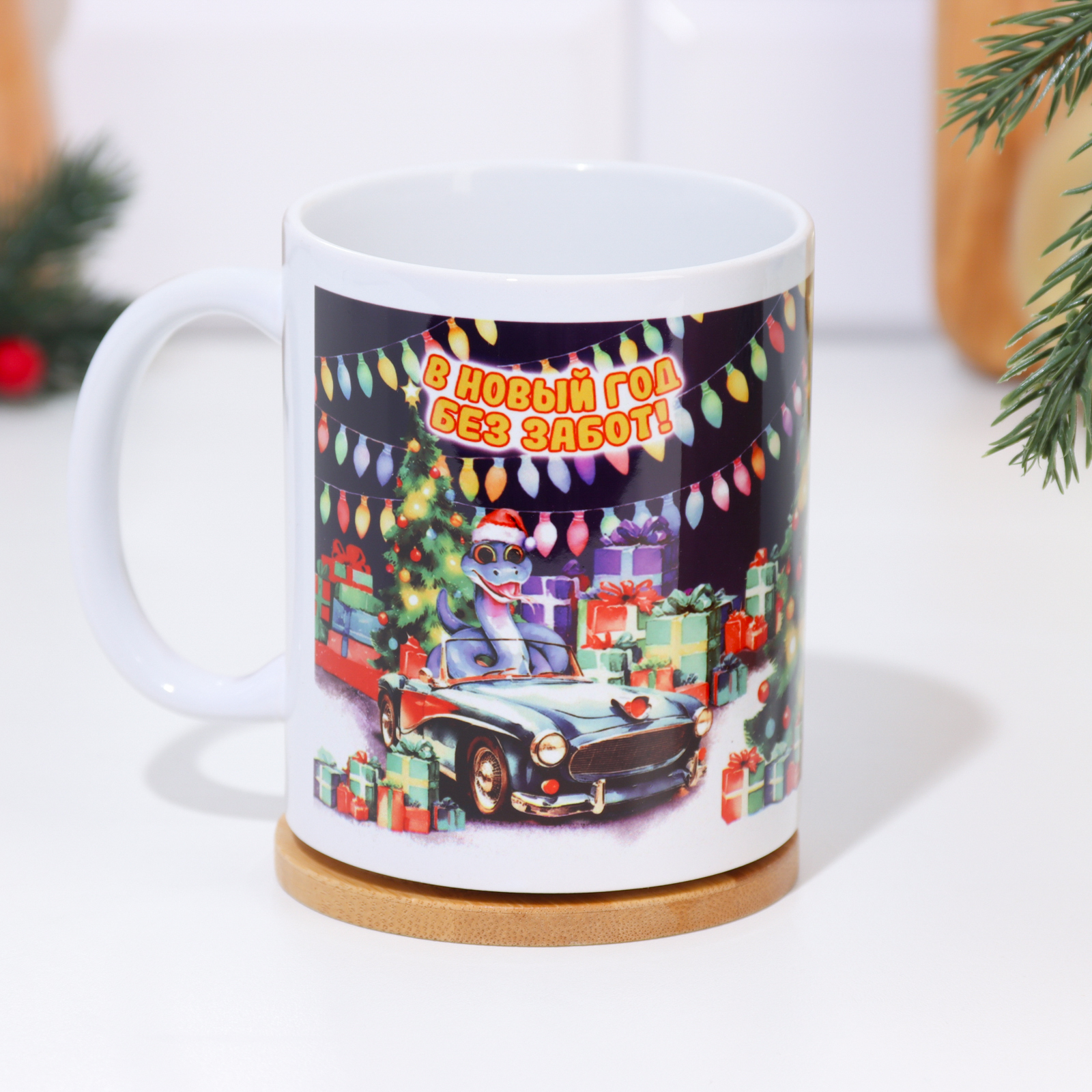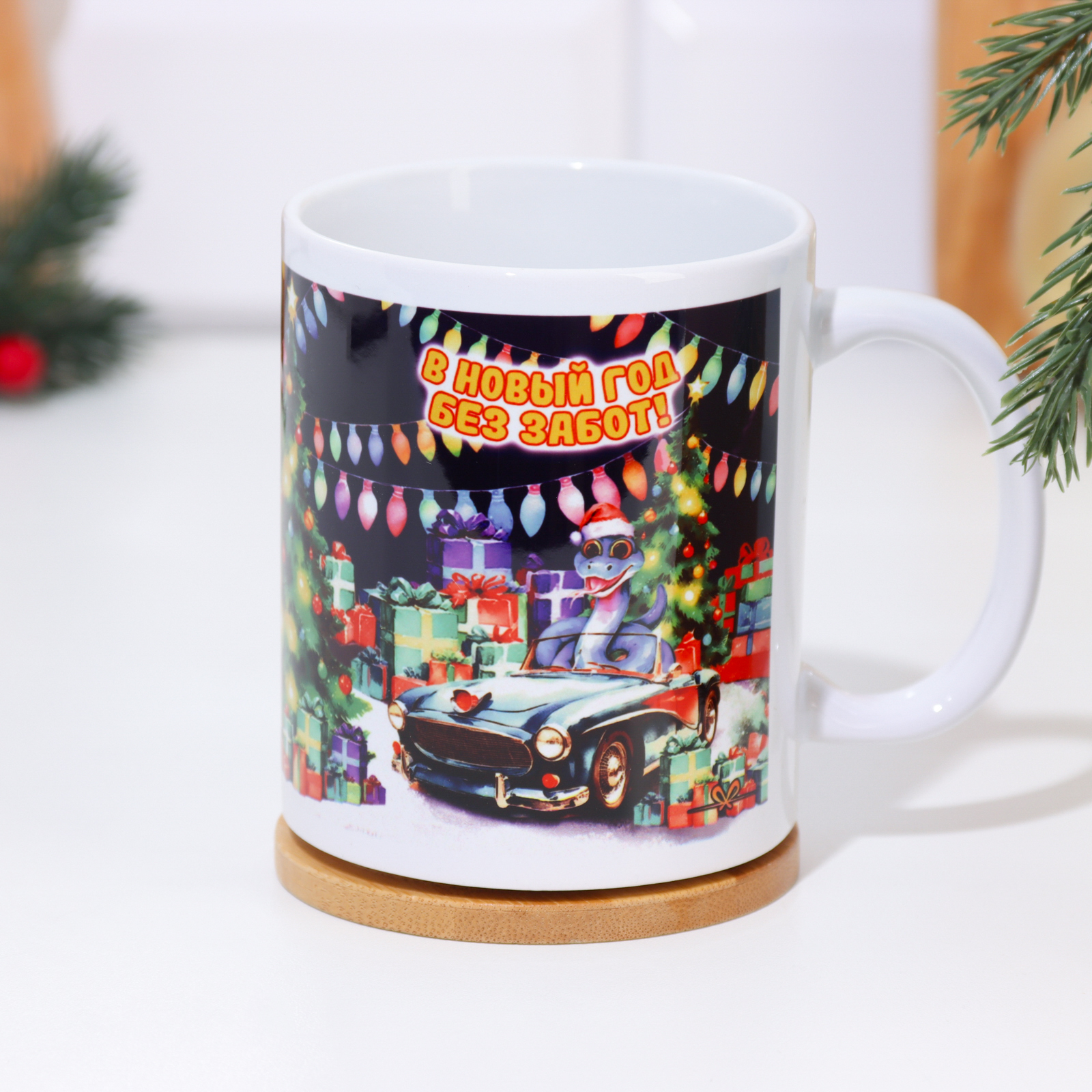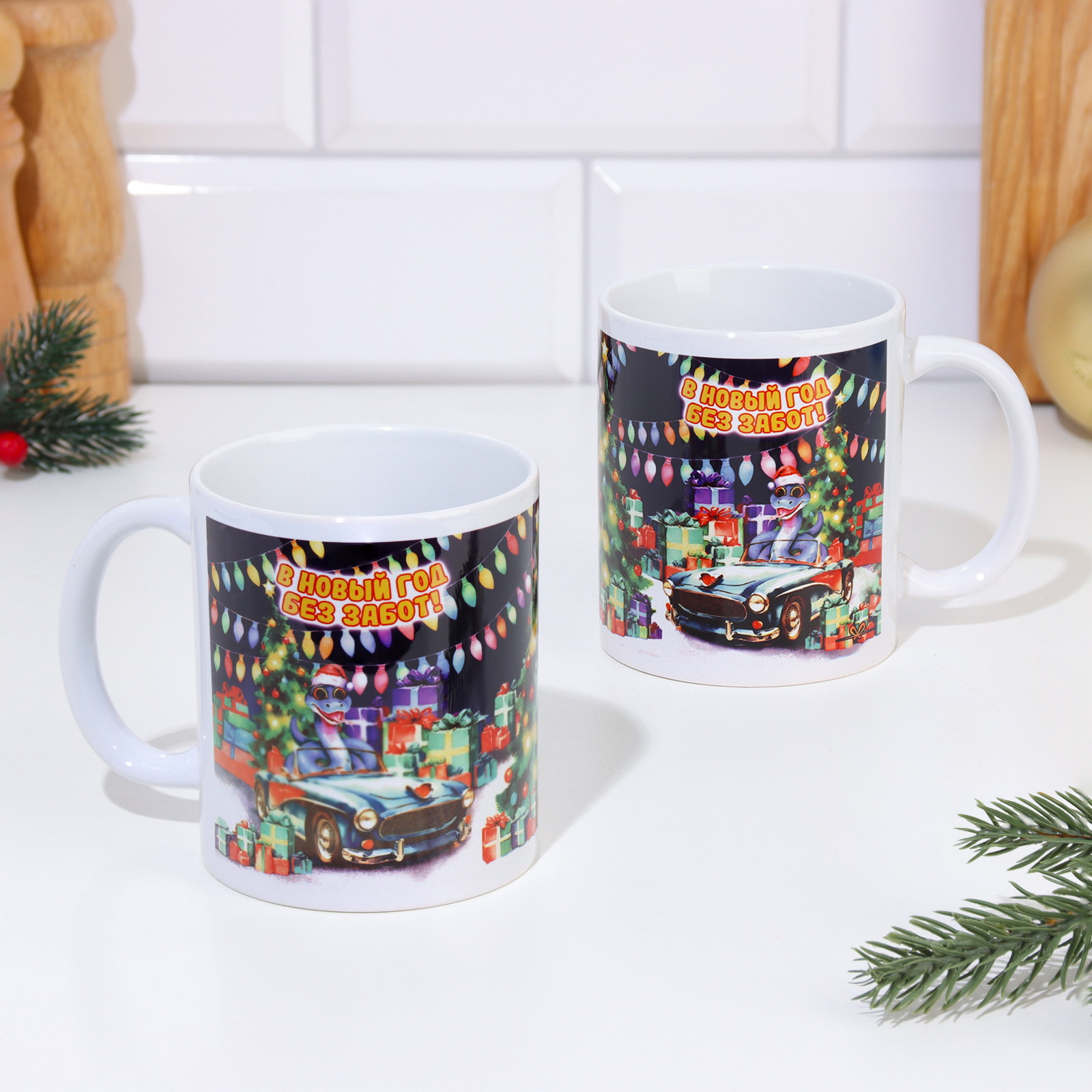 Кружка сублимация "в новый год без забот!" символ года, автомобиль, 320 мл
