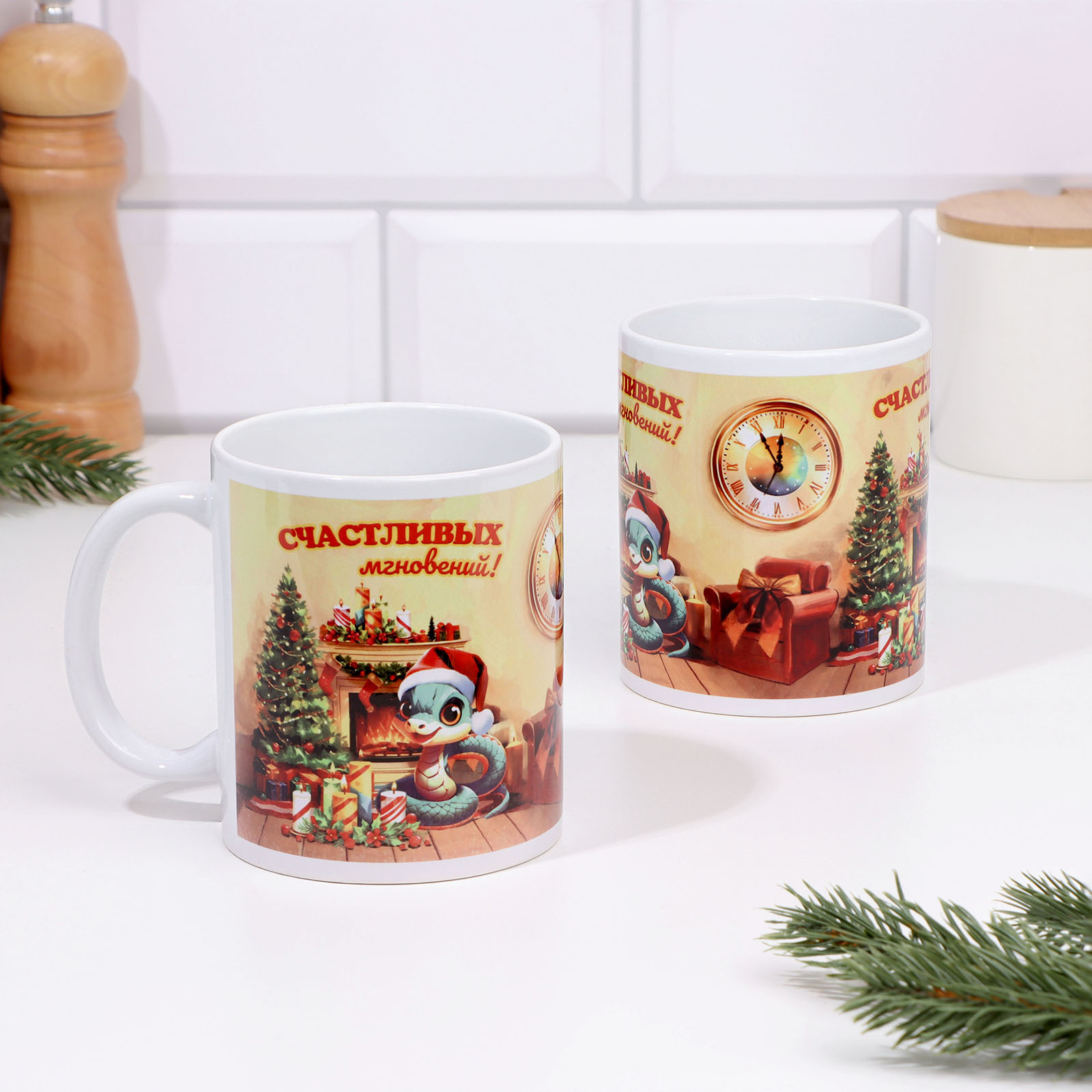 Кружка сублимация "счастливых мгновений!" символ года, камин, 320 мл