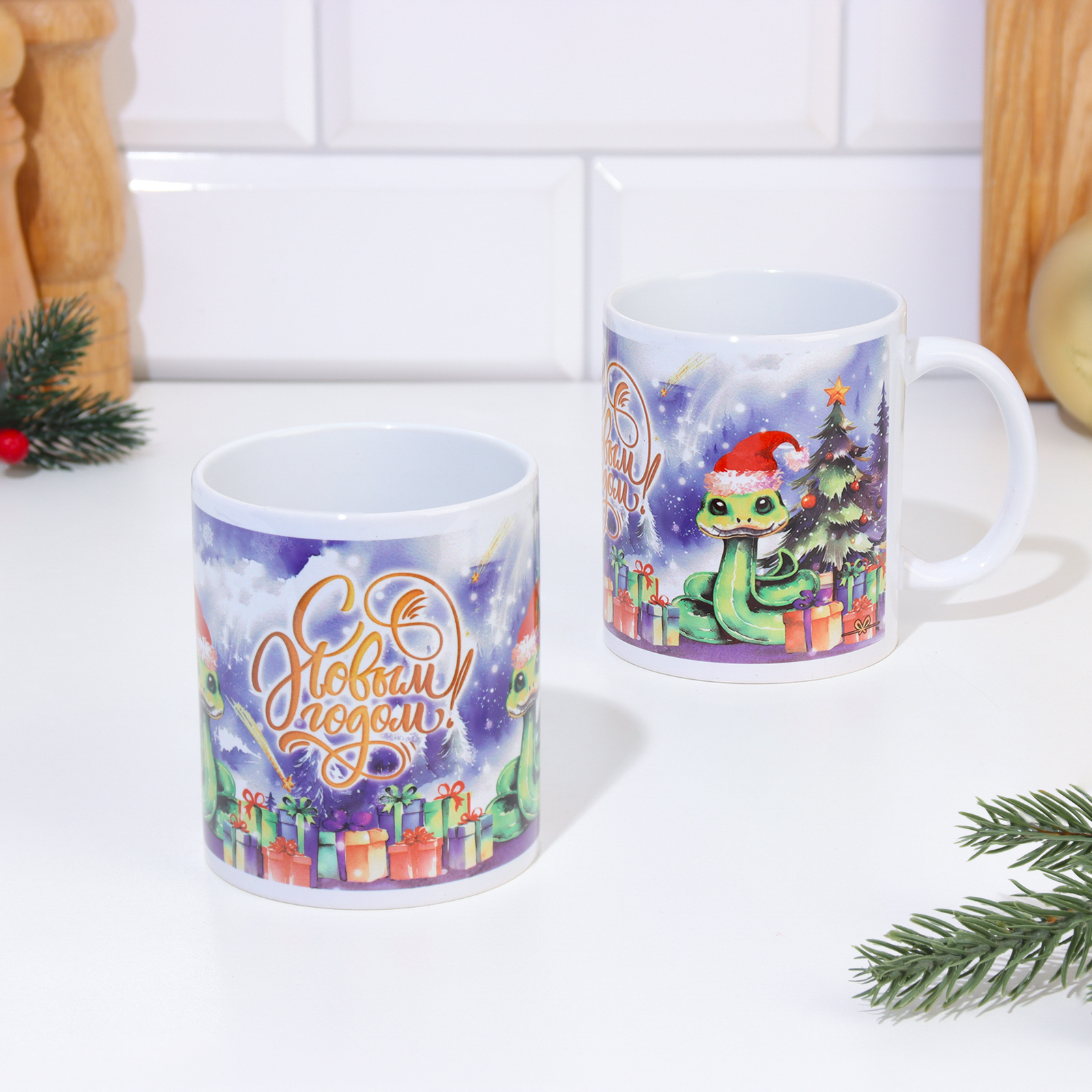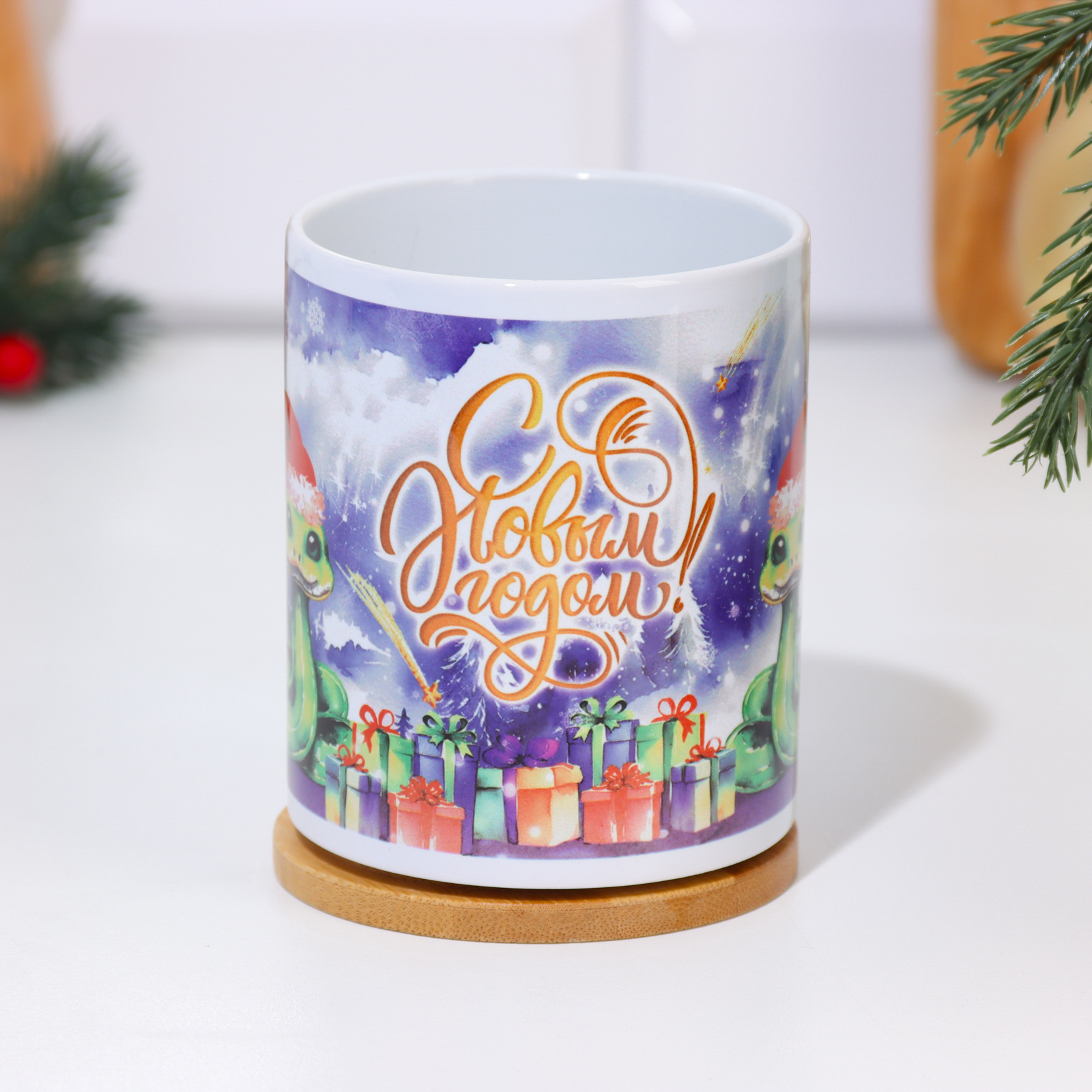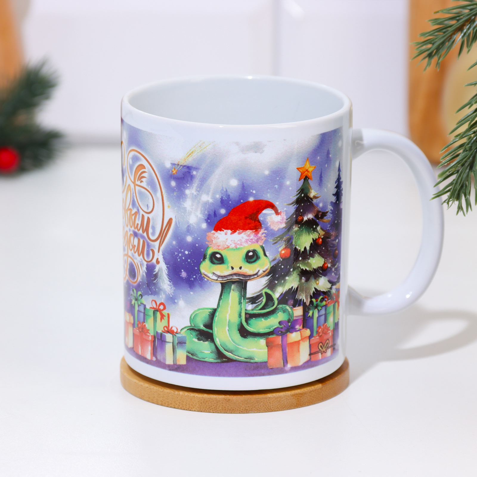 Кружка сублимация "с новым годом!" символ года, елка, подарки, 320 мл