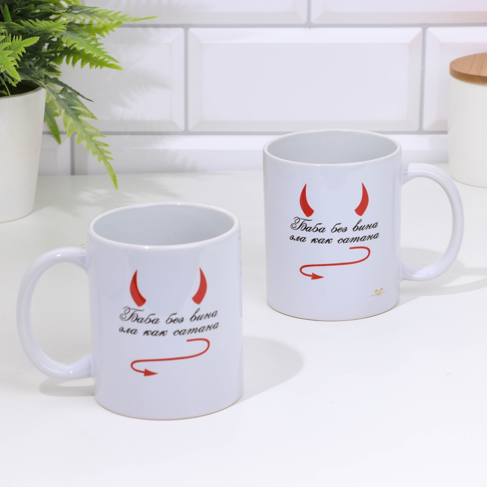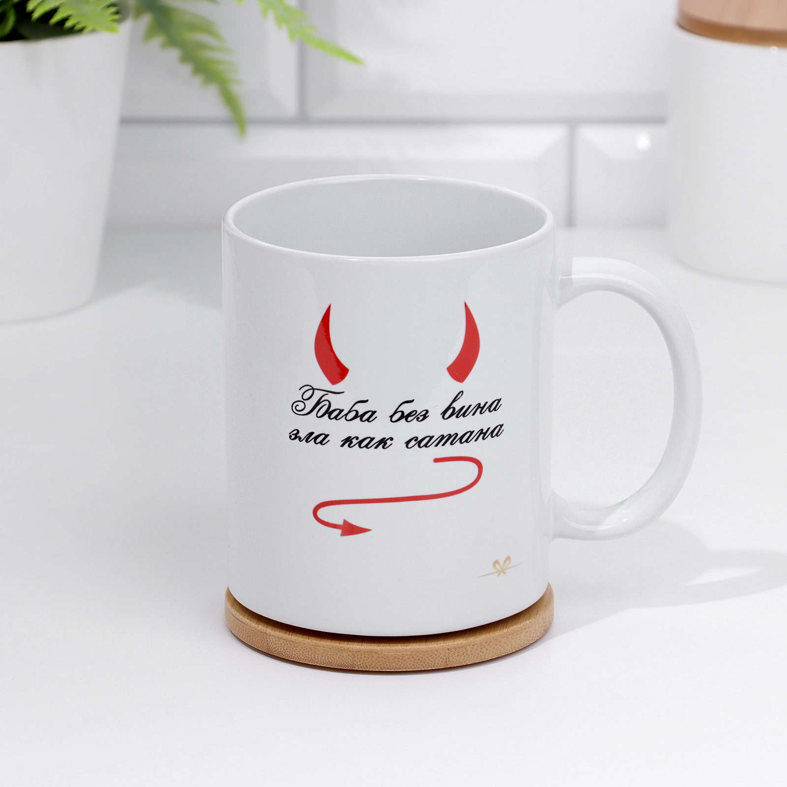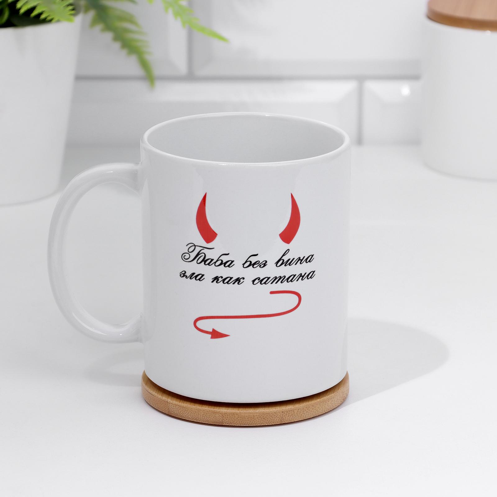 Кружка чайная керамическая "баба без вина зла как сатана" 320 мл,
