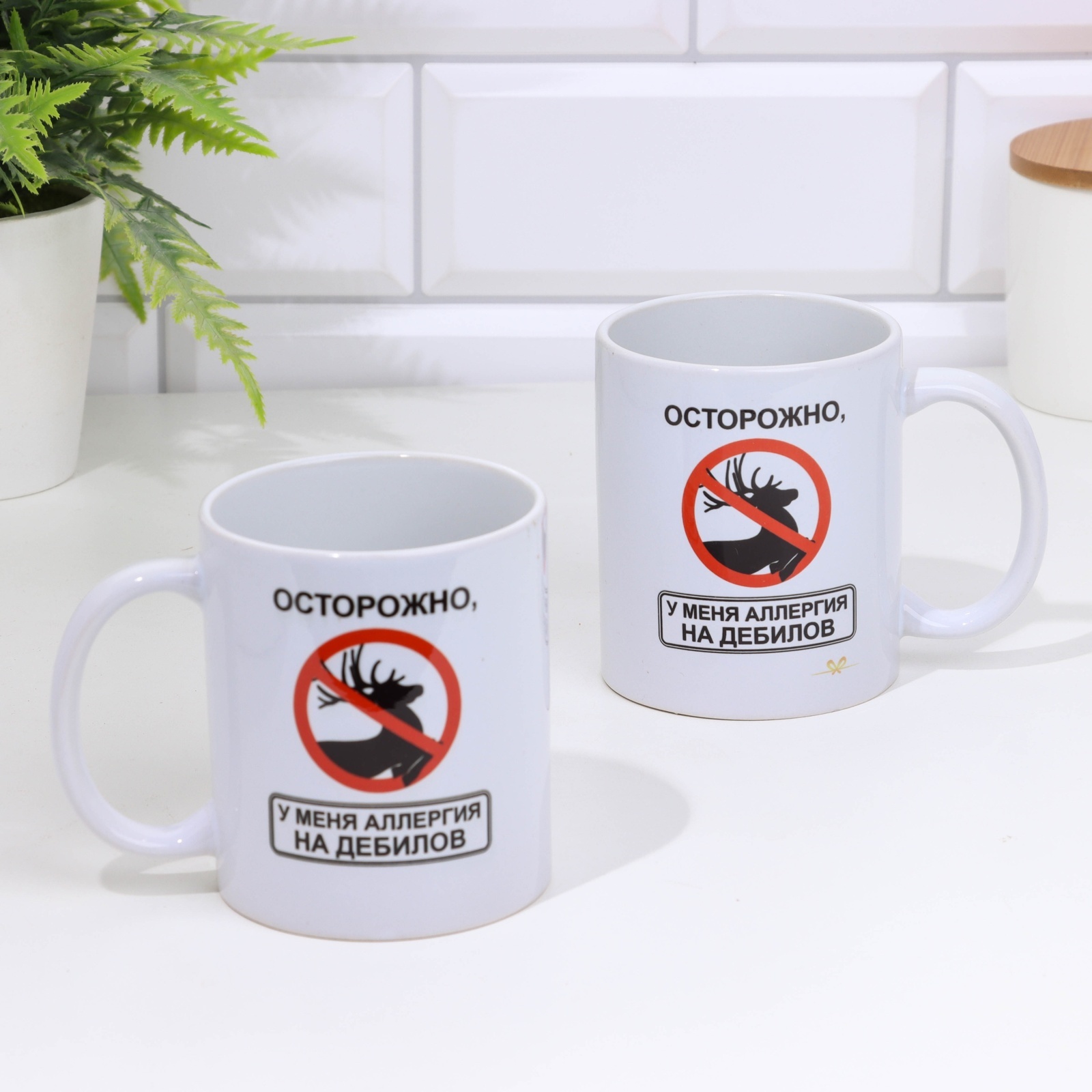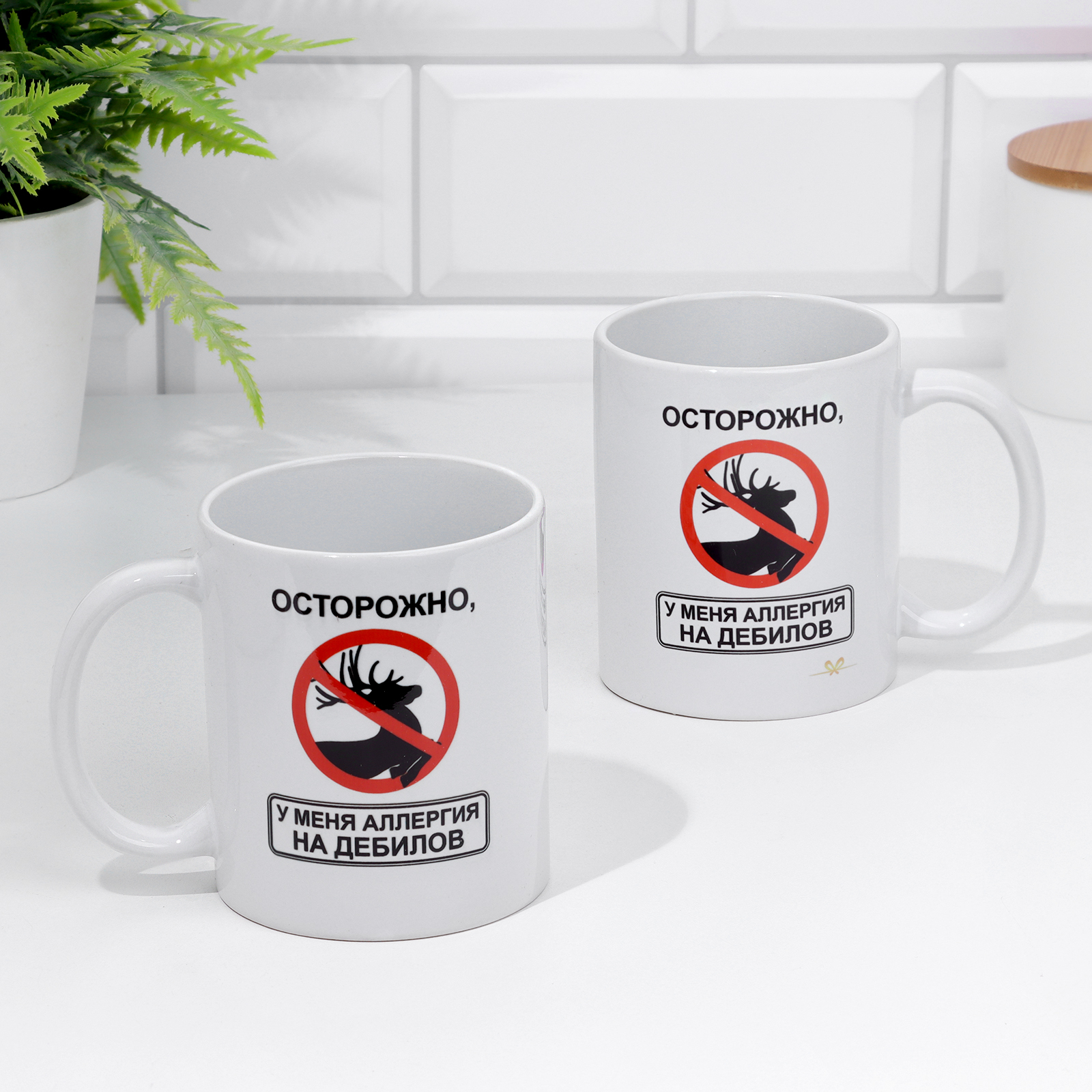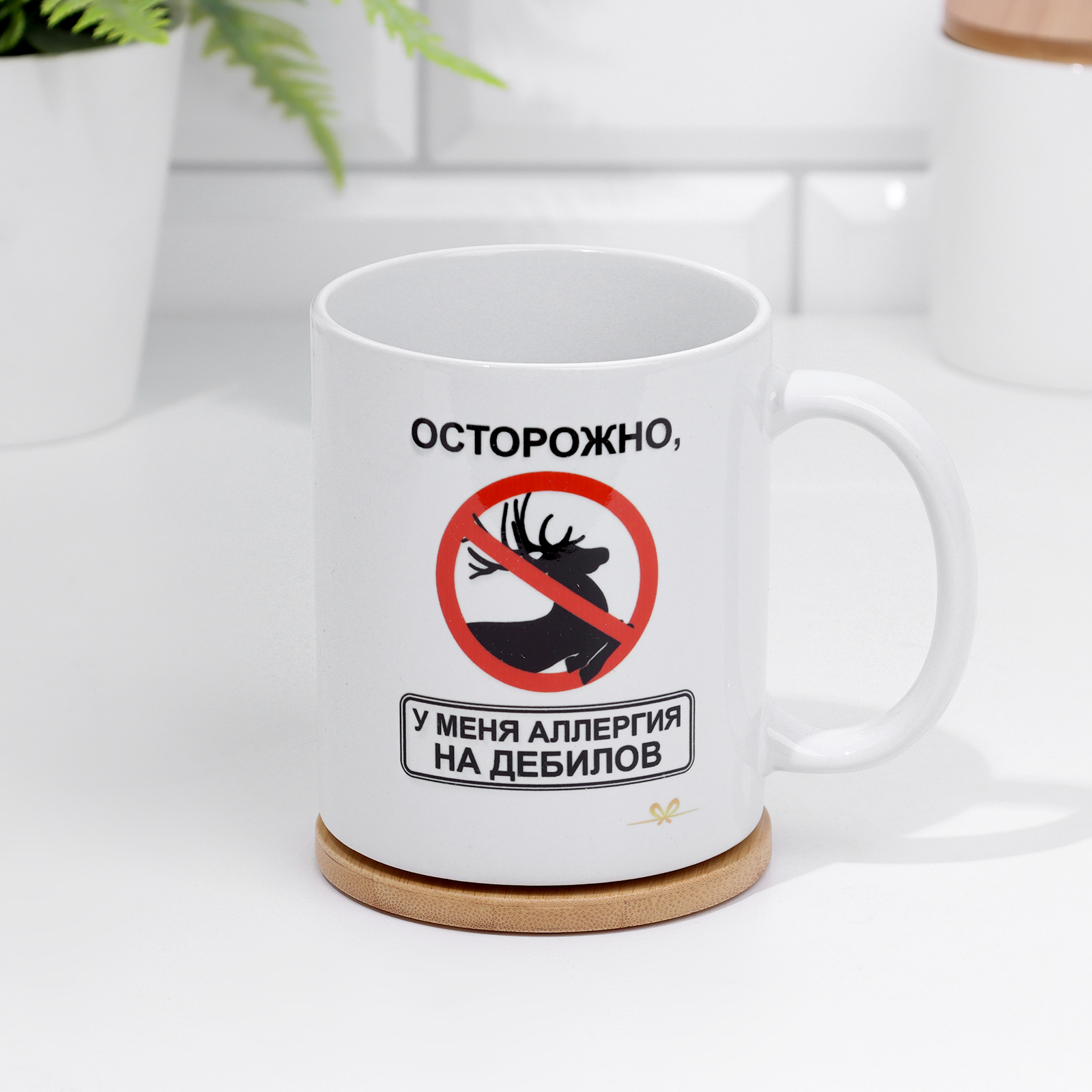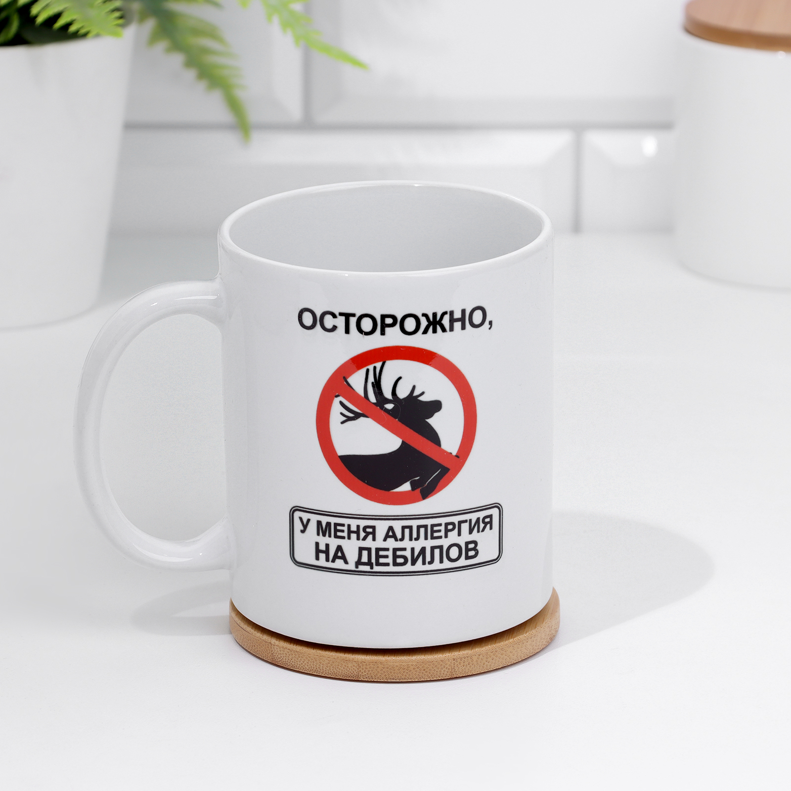 Кружка чайная керамическая "осторожно, у меня аллергия на дебилов!" 320 мл,