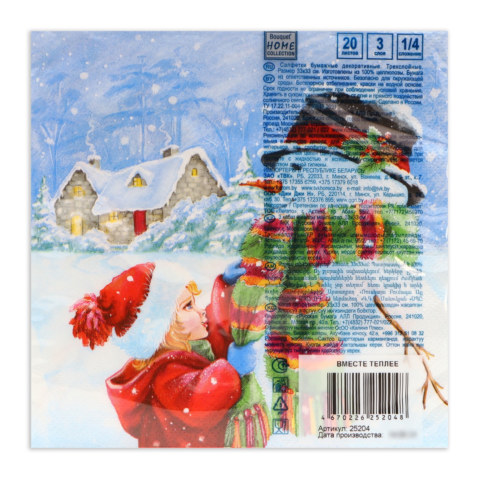 Новогодние салфетки бумажные Home Collection «вместе теплее», 3 слоя, 33х33 см, 20 шт