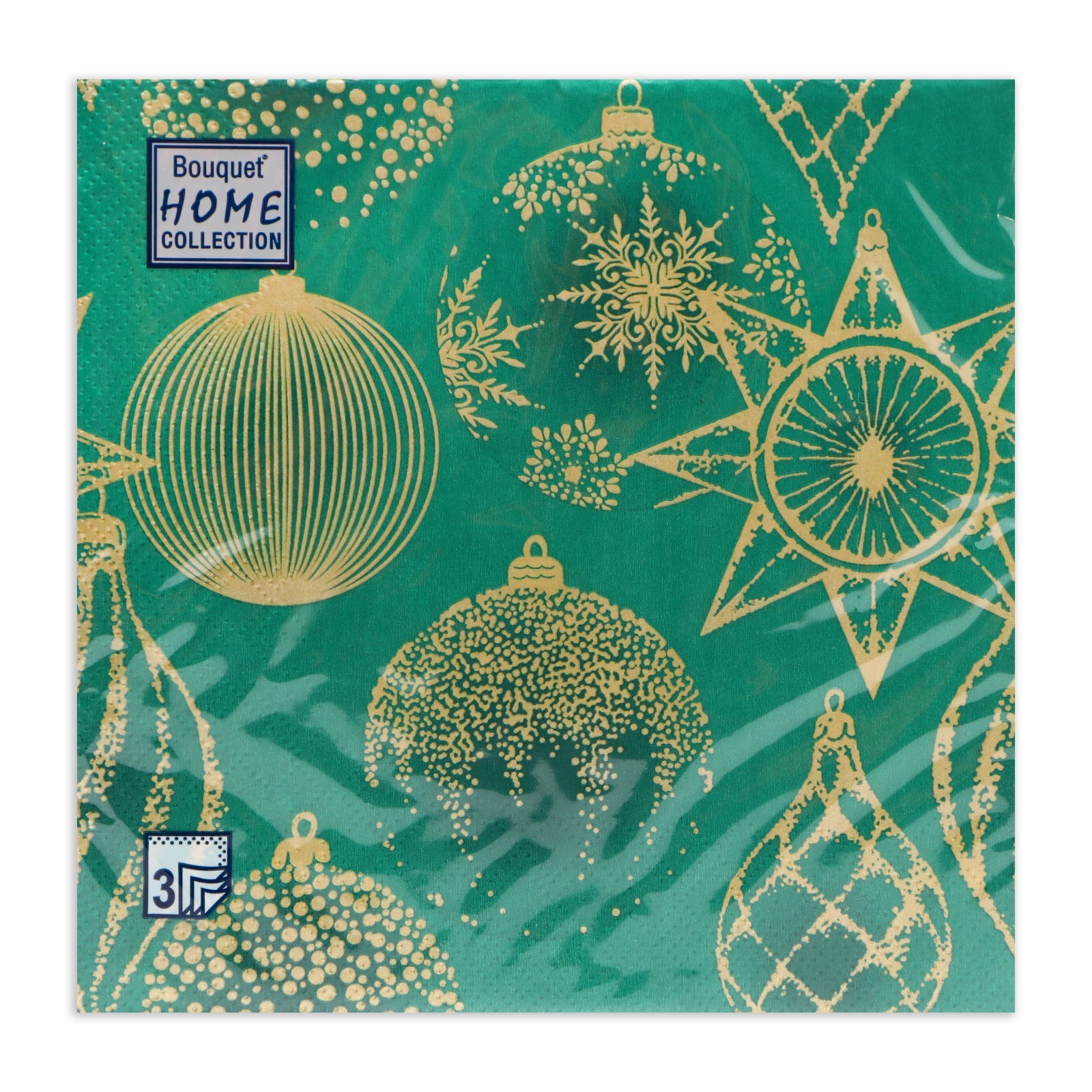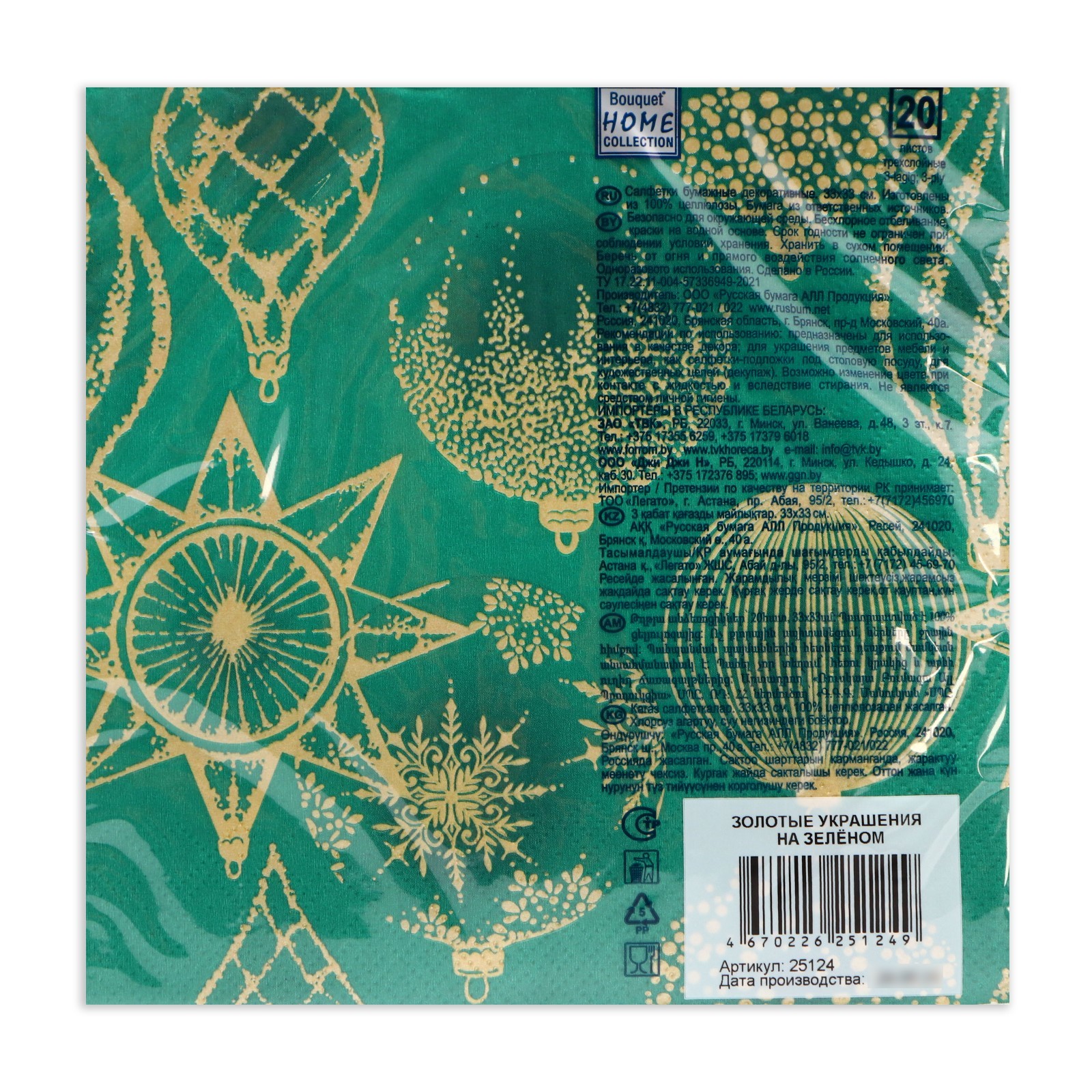 Новогодние салфетки бумажные Home Collection «золотые украшения на зеленом», 3 слоя, 33х33 см, 20 шт