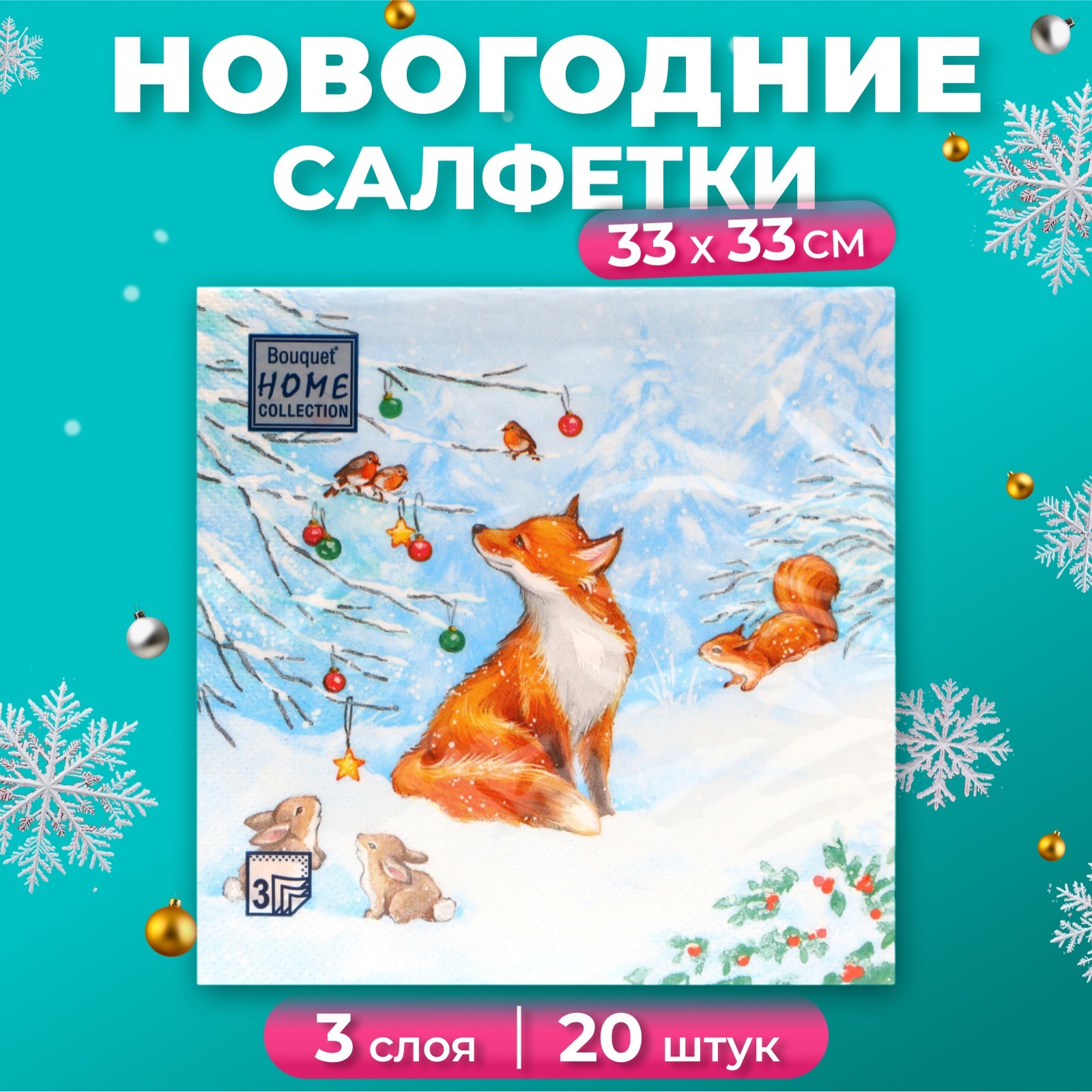 Новогодние салфетки бумажные Home Collection сlassic «лисичка», 3 слоя, 33х33 см, 20 шт