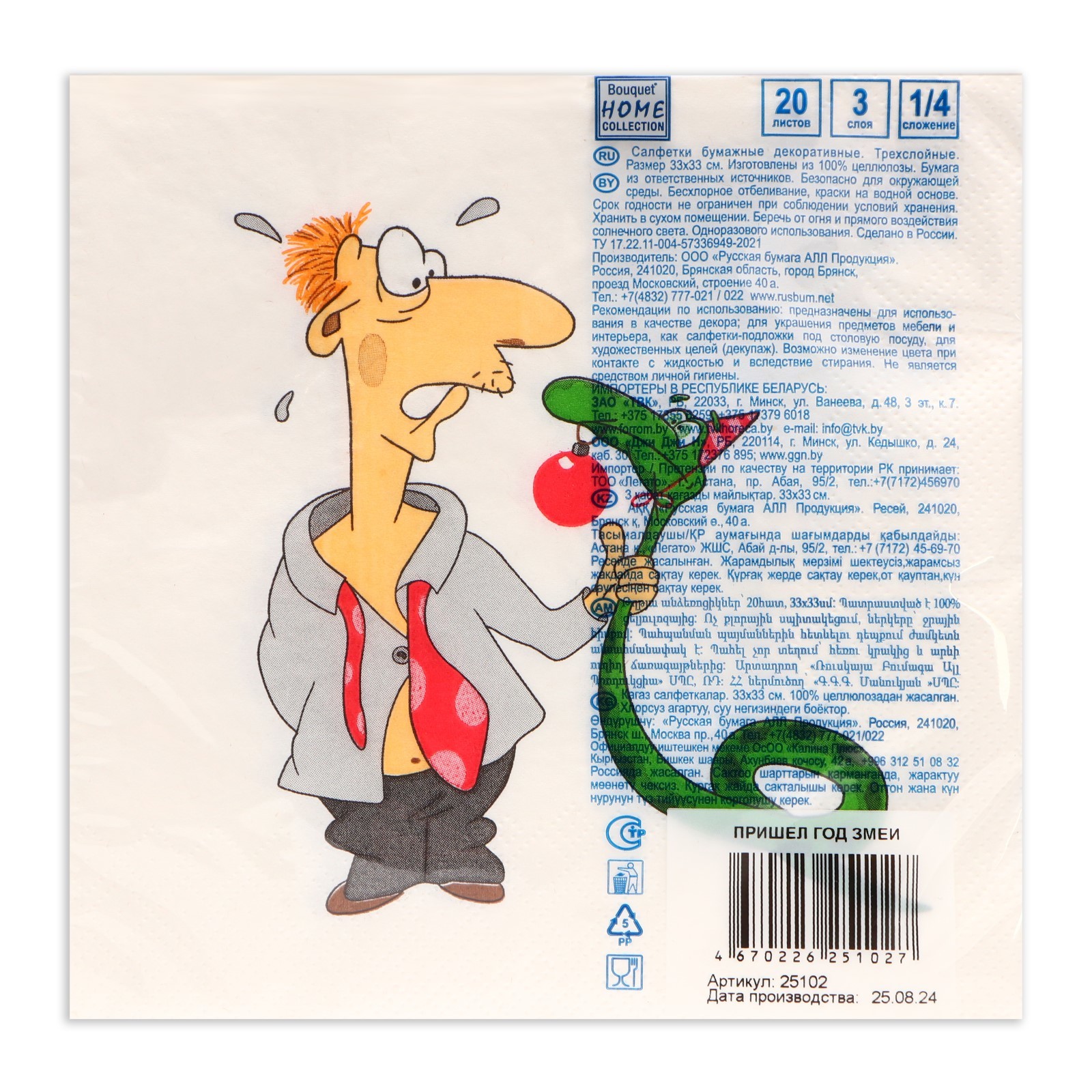 Новогодние салфетки бумажные Home Collection сlassic «пришел год змеи», 3 слоя, 33х33 см, 20 шт