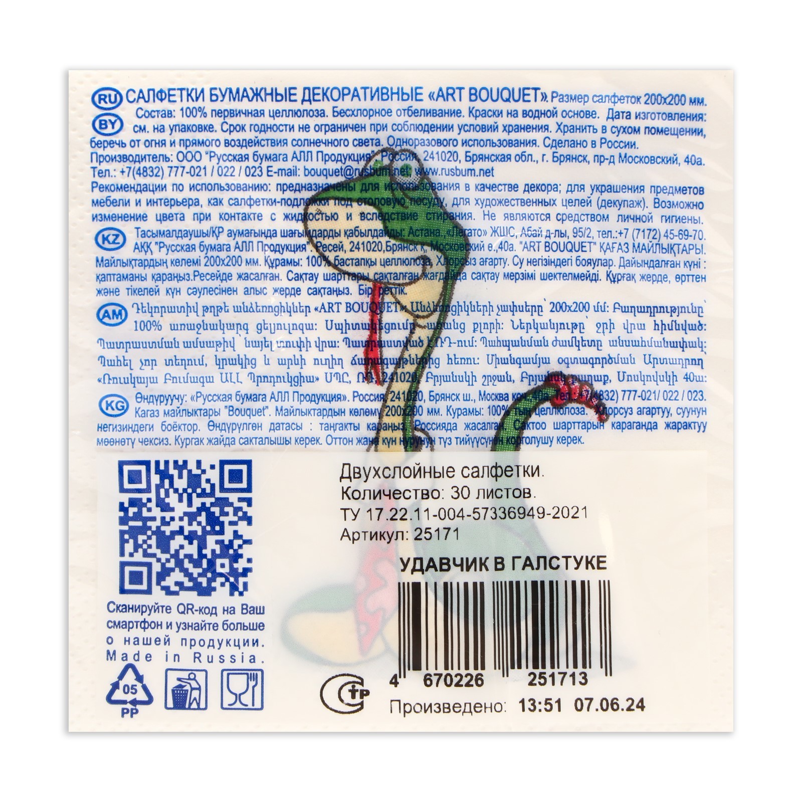Новогодние салфетки бумажные Art Bouquet «удавчик в галстуке», 2 слоя, 20х20 см, 30 шт.