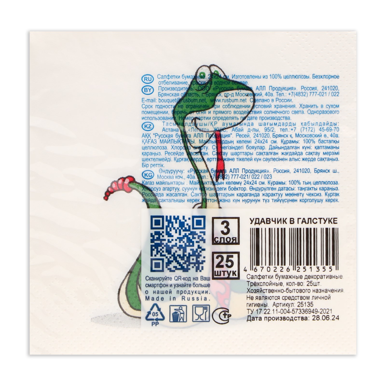 Новогодние салфетки бумажные Bouquet De Luxe «удавчик в галстуке», 3 слоя, 24х24 см, 25 шт.