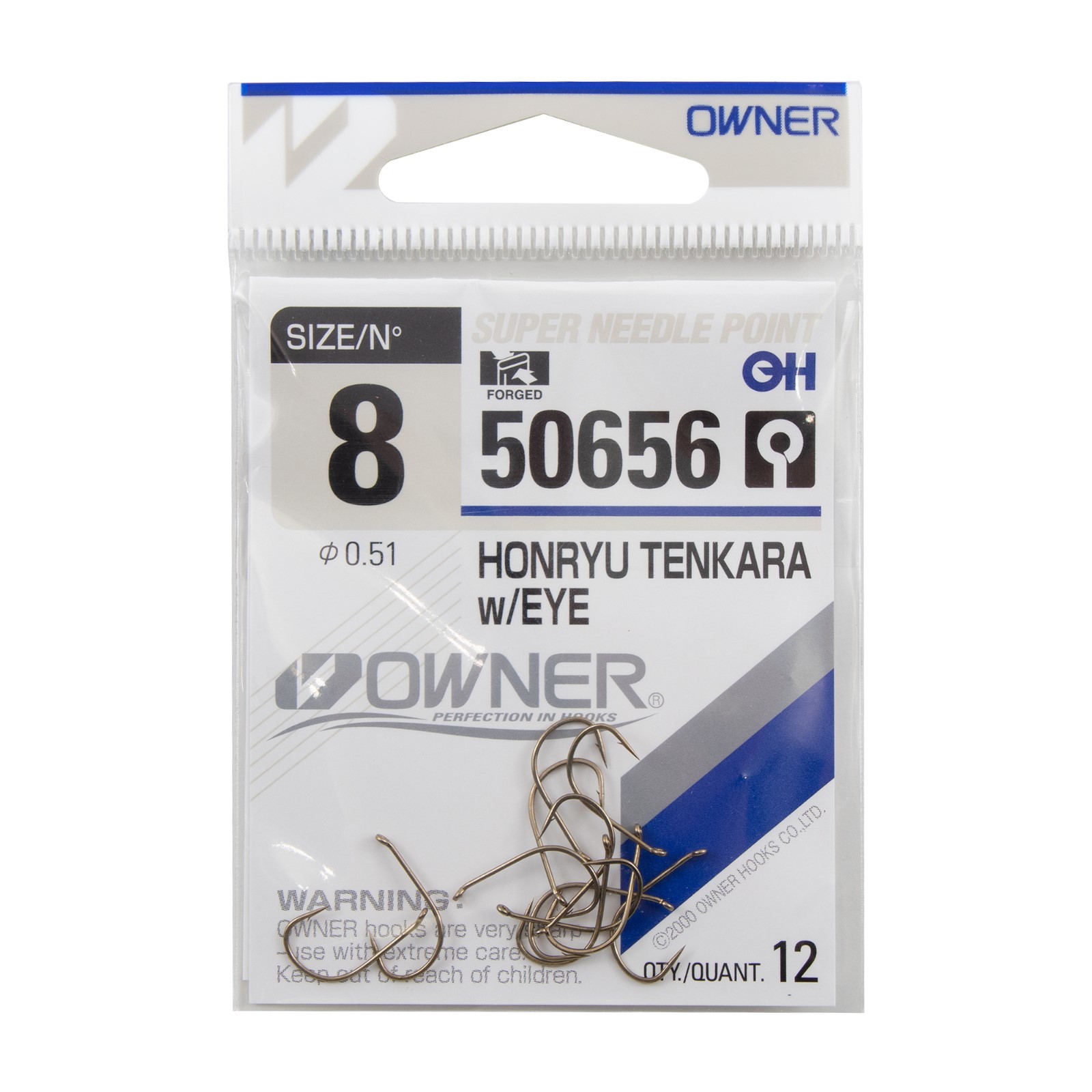Крючок Owner Honryu Tenkara Brown №8, 12 шт.