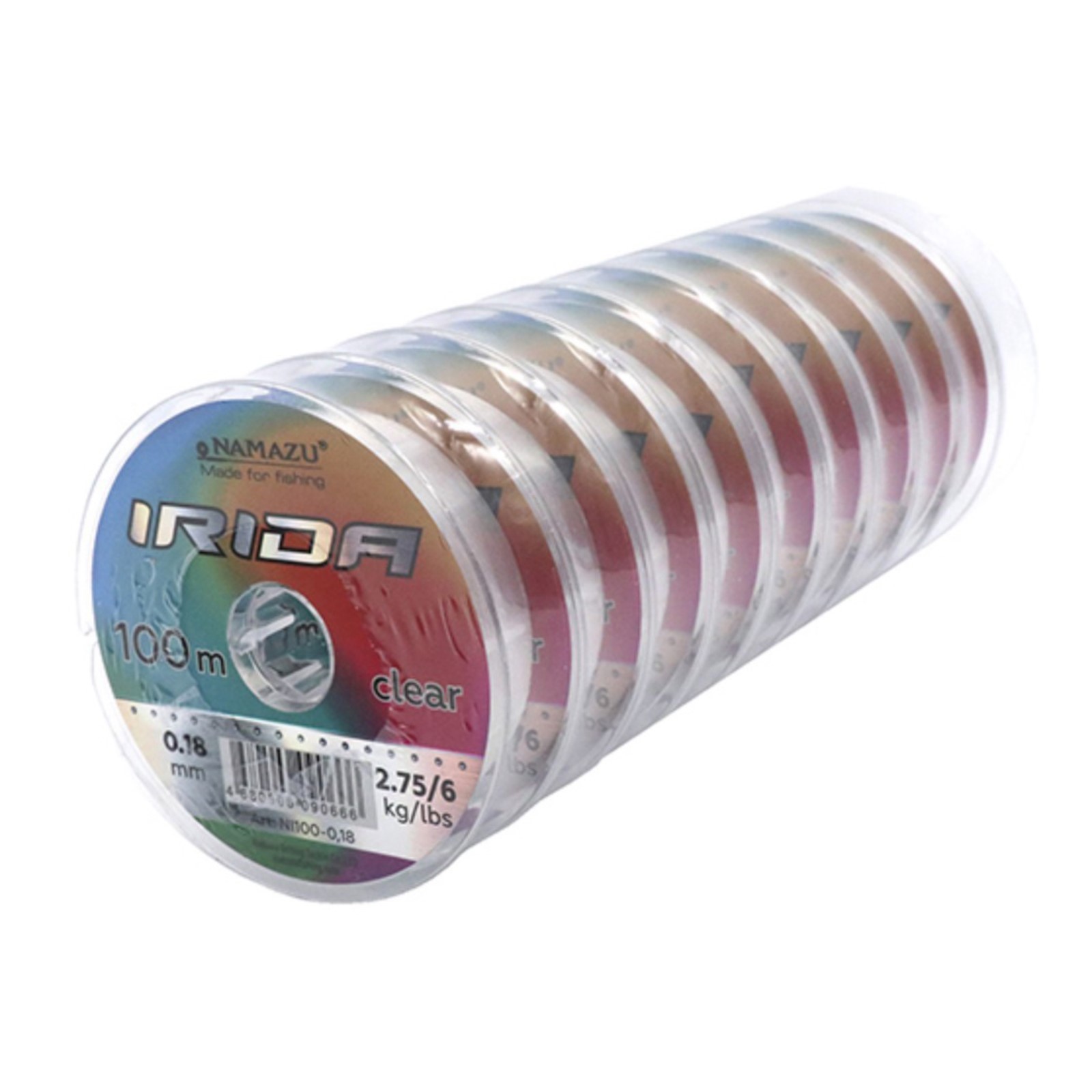 Леска Namazu Irida, L=100 м, D=0.18 мм, Test=2.75 кг, прозрачная, упаковка 10 шт.