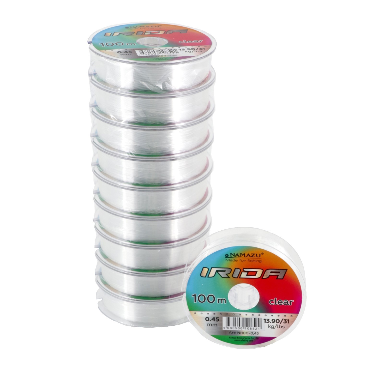 Леска Namazu Irida, L=100 м, D=0.45 мм, Test=13.90 кг, прозрачная, упаковка 10 шт.