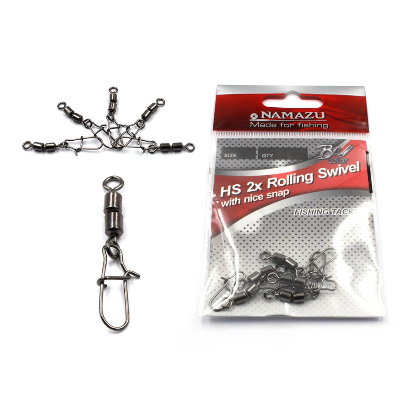 Вертлюг двойной с застежкой namazu hs 2x rolling swivels, bn, размер 4. test-23 кг.