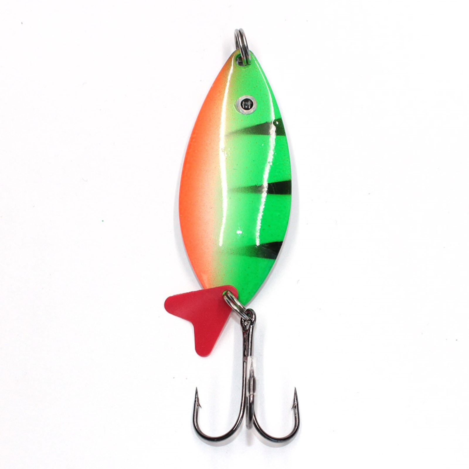 Блесна колеблющаяся namazu glassy, вес 28 г, цвет 24. Колеблющиеся блесны Namazu с превосходно отработанным корпусом. Отличаются выразительной игрой, максимально схожей с движениями живого малька. В момент падения блесна красиво бликует, стимулируя хищника на поклёвку. Имеет подвижную, яркую пластинку, напоминающую плавники, что дополнительно привлекает щуку и другого хищника. Приманка оснащена тройным острым крючком. Цвет: Белый Цвет: Зелёный Цвет: Оранжевый Вес, г: 28 Тип приманки: Колеблющаяся Материал: Металл  развернуть описание ▼