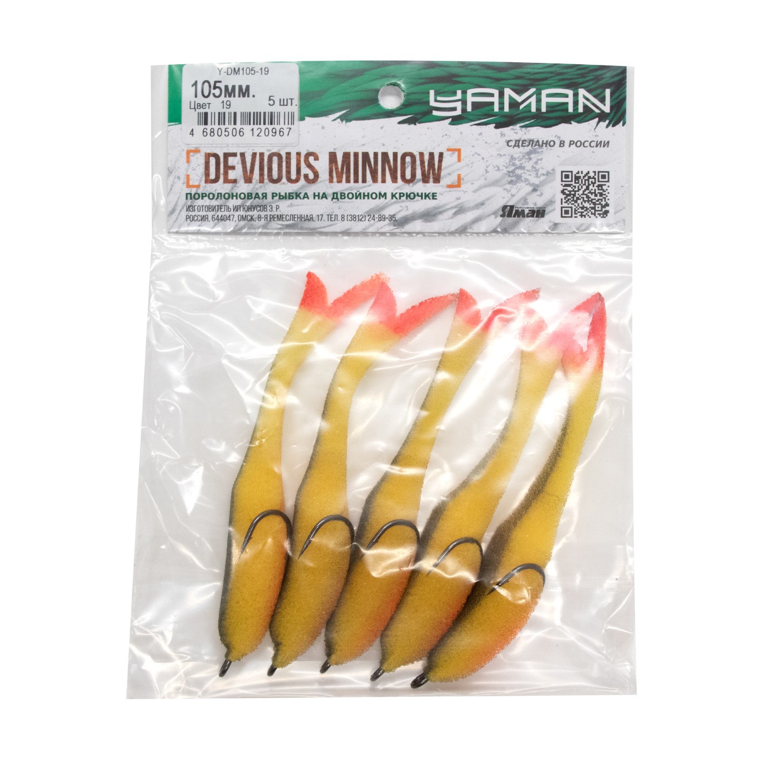 Поролоновая рыбка yaman devious minnow на двойнике, 105 мм, цвет 19 uv, 5 шт.. Поролоновая рыбка YAMAN Devious Minnow на двойнике - это приманка, изготовленная из качественного поролона, что обеспечивает долговечность приманки. Форма четко выверена, поэтому игра такой рыбки в водоеме очень реалистична. Приманка имеет прижатый двойной крючок, за счет чего вероятность зацепа сведет к минимуму. Линейка YAMAN Devious Minnow имеет широкую цветовую гамму приманок под различные условия ловли. Цвет: Чёрный Цвет: Оранжевый Цвет: Жёлтый Длина, см: 10.5 Тип приманки: Мягкая Материал: Поролон Вид: Поролоновая рыбка  развернуть описание ▼