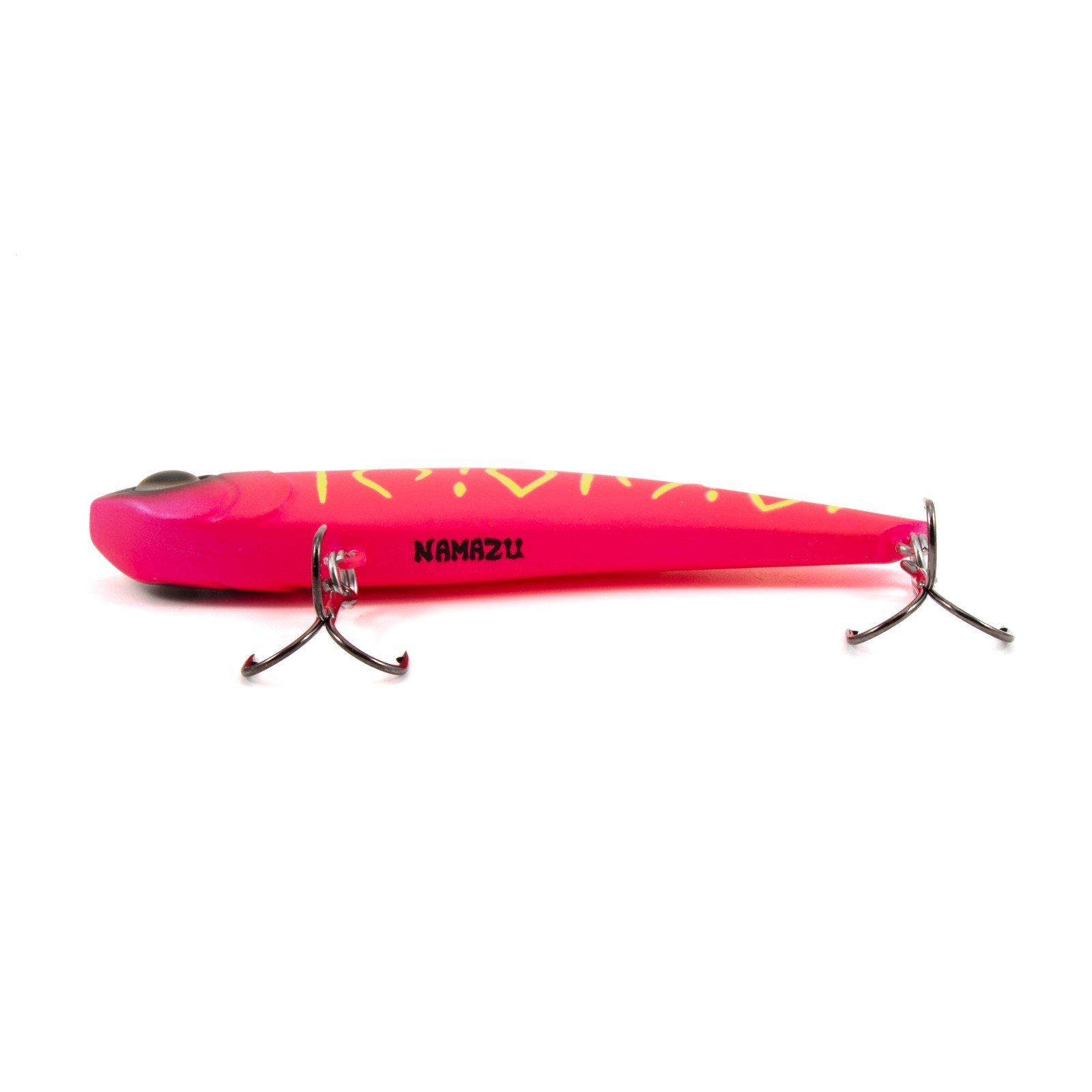 Раттлин namazu bionic, l=90 мм 27 г, тонущий, цвет №9. Namazu Bionic - это воблер класса vibration, который подходит для отвесной рыбалки и джиговой анимации, а также горизонтальных проводок. Может использоваться как летом, так и зимой. Визуально Namazu Bionic является детальной копией рыбки. Имеет утлощенное с боков тело, характерную площадку сверху и маленький спинной плавник, который стабилизирует игру. Цвет: Розовый Вес, г: 27  развернуть описание ▼