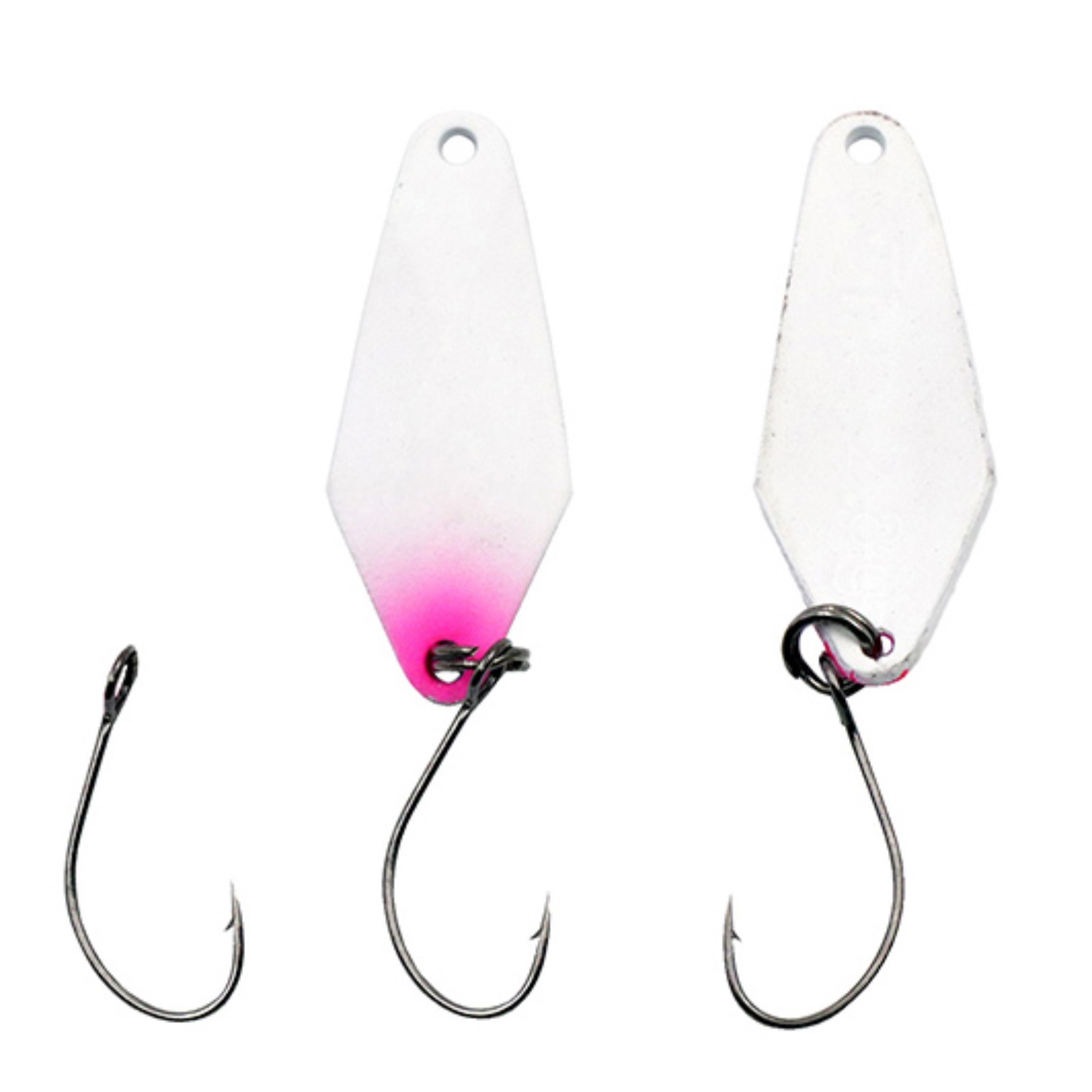 Блесна микроколеблющаяся namazu pro tia costola, вес 2.8 г, цвет 107. "TiA COSTOLA – конструкция блесны уникальна, она стабильно работает при разных скоростях и горизонтах проводки. Приманка позволит подобрать заветный «ключик» к трофею под любую активность. Блесна TiA Costola имеет два типоразмера: 2, 2 и 2, 8 г. Оснащена качественной фурнитурой и превосходными крючками Koi. " Цвет: Розовый Цвет: Белый Вес, г: 2.8 Тип приманки: Колеблющаяся Материал: Металл  развернуть описание ▼