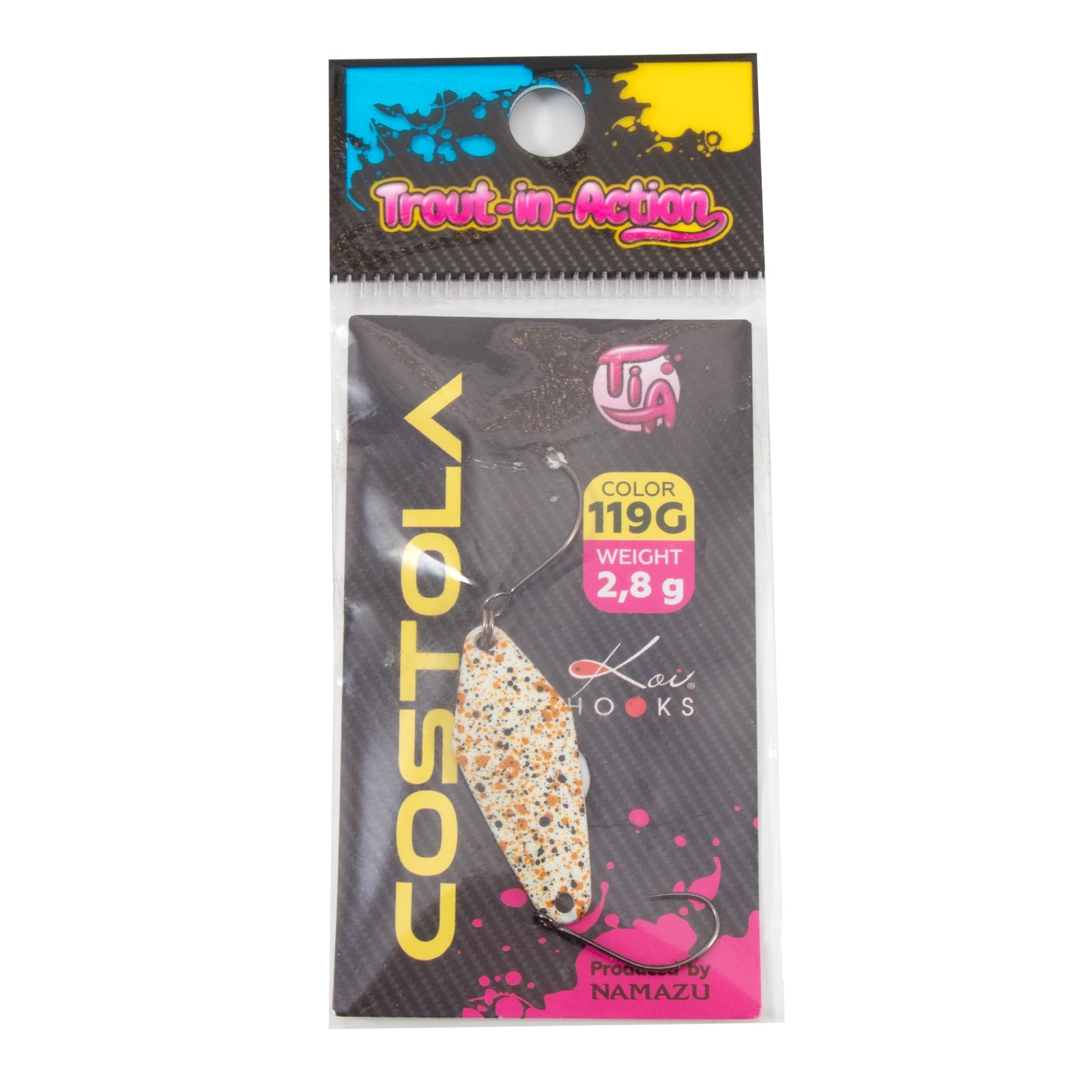 Блесна микроколеблющаяся namazu pro tia costola, вес 2.8 г, цвет 119 с/н. "TiA COSTOLA – конструкция блесны уникальна, она стабильно работает при разных скоростях и горизонтах проводки. Приманка позволит подобрать заветный «ключик» к трофею под любую активность. Блесна TiA Costola имеет два типоразмера: 2, 2 и 2, 8 г. Оснащена качественной фурнитурой и превосходными крючками Koi. " Цвет: Чёрный Цвет: Жёлтый Цвет: Белый Вес, г: 2.8 Тип приманки: Колеблющаяся Материал: Металл  развернуть описание ▼