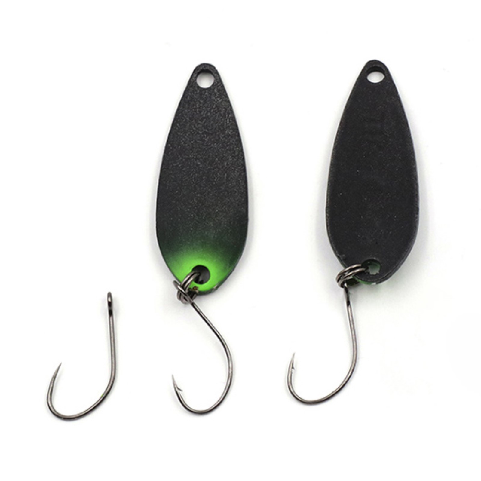 Блесна микроколеблющаяся namazu pro tia foglio, вес 3.8 г, цвет 109. "TiA FOGLIO – феноменально привлекает и провоцирует рыбу на поклевку при быстрых скоростях проводки в любом горизонте. Блесна создает мощные колебания в водной среде, перед которыми очень сложно устоять хищнику. Отличается стабильной игрой. Блесна TiA FOGLIO имеет два типоразмера: 2, 5 и 3, 8 г. Оснащена качественной фурнитурой и превосходными крючками Koi. " Цвет: Чёрный Цвет: Зелёный Вес, г: 3.8 Тип приманки: Колеблющаяся Материал: Металл  развернуть описание ▼