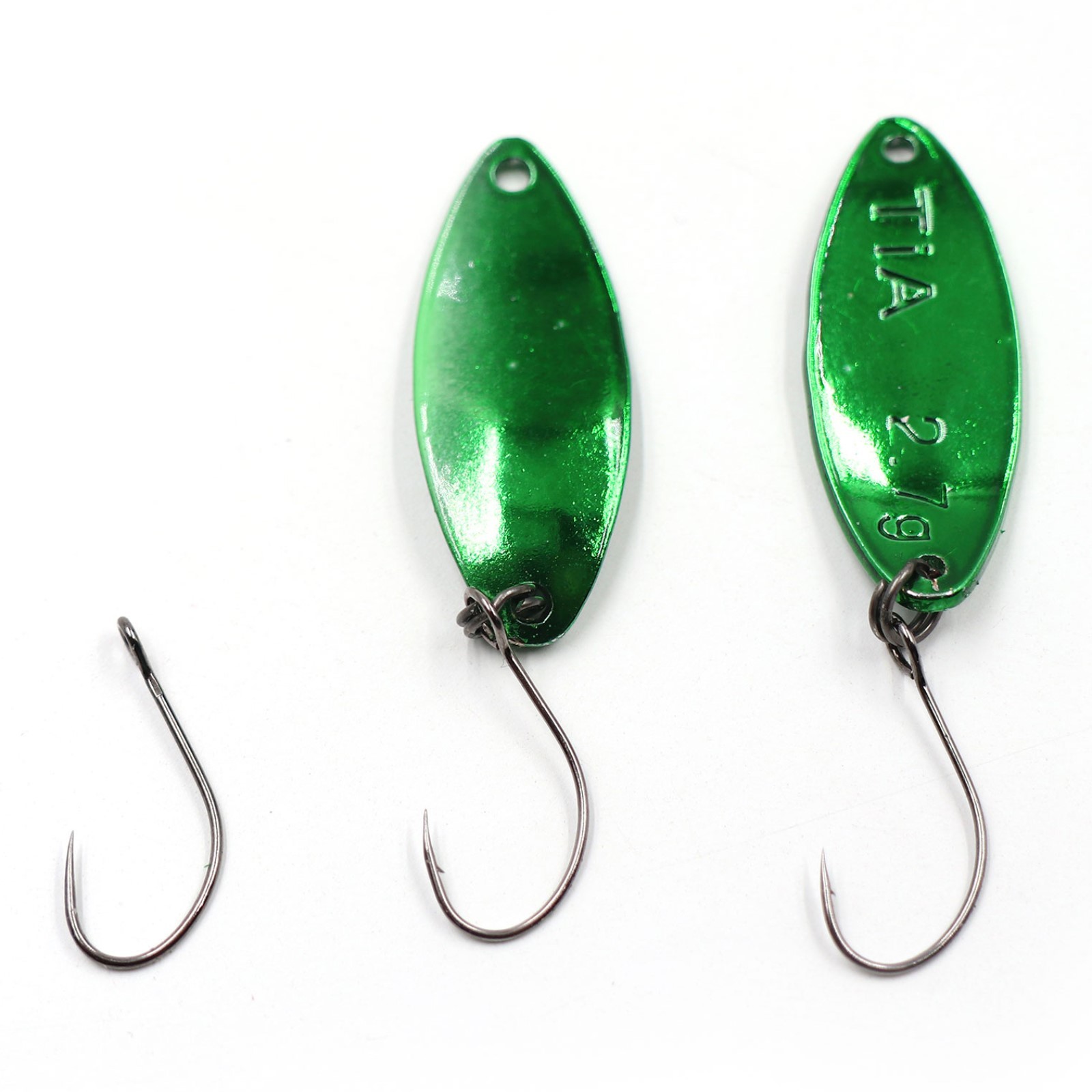 Блесна микроколеблющаяся namazu pro tia paradiso, вес 2.7 г, цвет 114. TiA PARADISO – «универсальный солдат». Прекрасно работает как на водоемах с течением, так и в стоячей воде. Блесна PARADISO допускает любые варианты и типы проводок в любом из горизонтов. Имеет три типоразмера: 2, 7; 3, 5 и 5 г. Оснащена качественной фурнитурой и превосходными крючками Koi. Цвет: Зелёный Вес, г: 2.7 Тип приманки: Колеблющаяся Материал: Металл  развернуть описание ▼