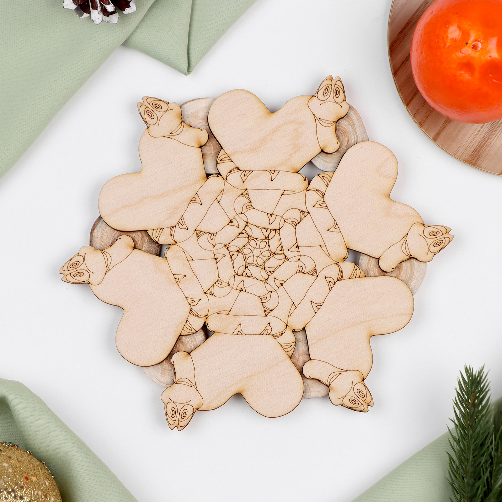 Новый год. подставка с символом года под горячее «с любовью», D=20 см, можжевельник