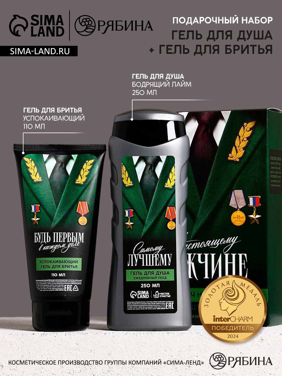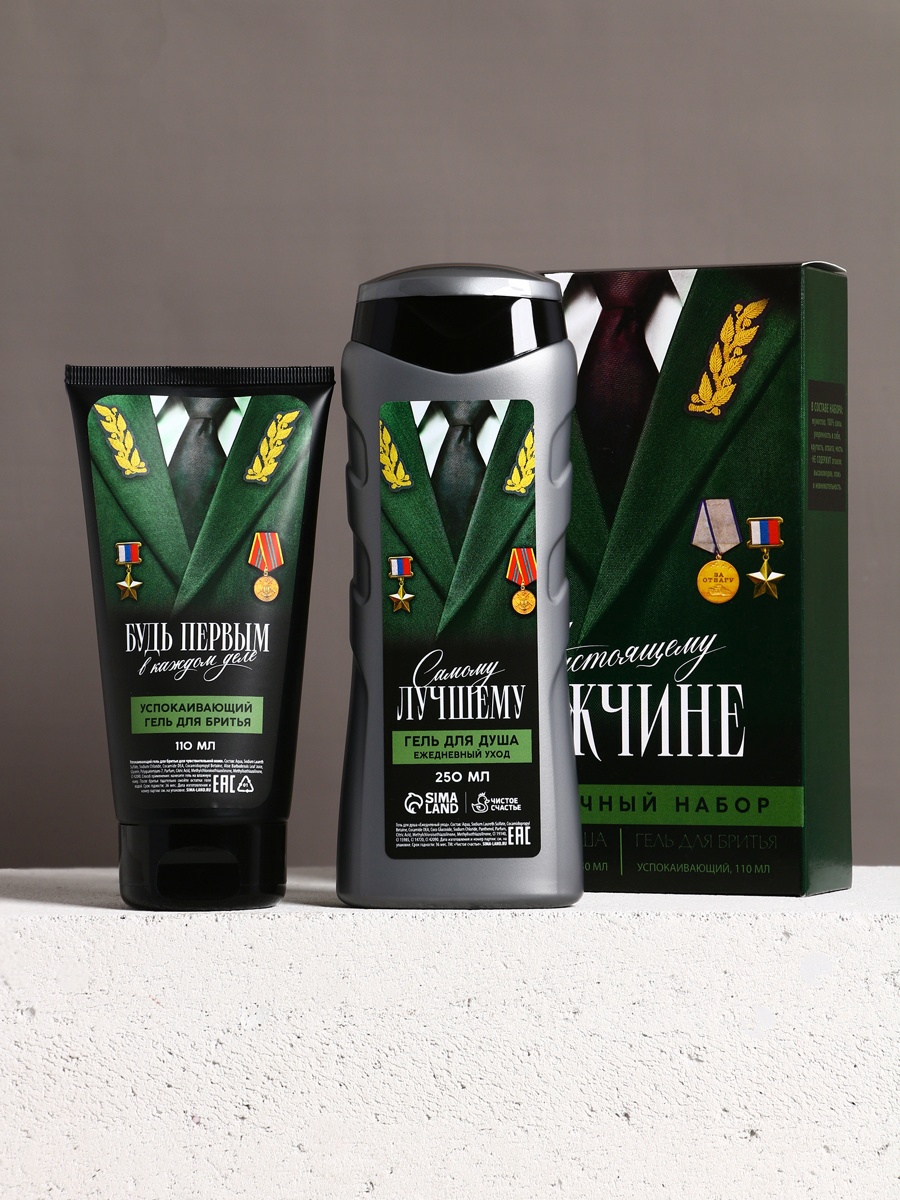 Подарочный набор «настоящему мужчине», гель для душа, 250 мл и гель для бритья, 110 мл, чистое счастье