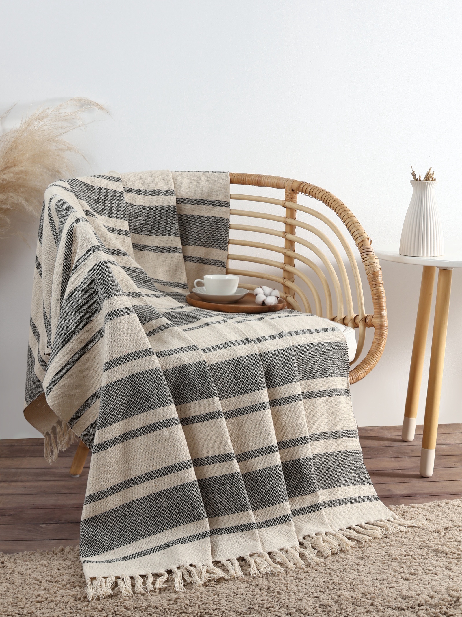 Плед с кисточками «этель», тёмная полоса с таффтингом, 125 150 см