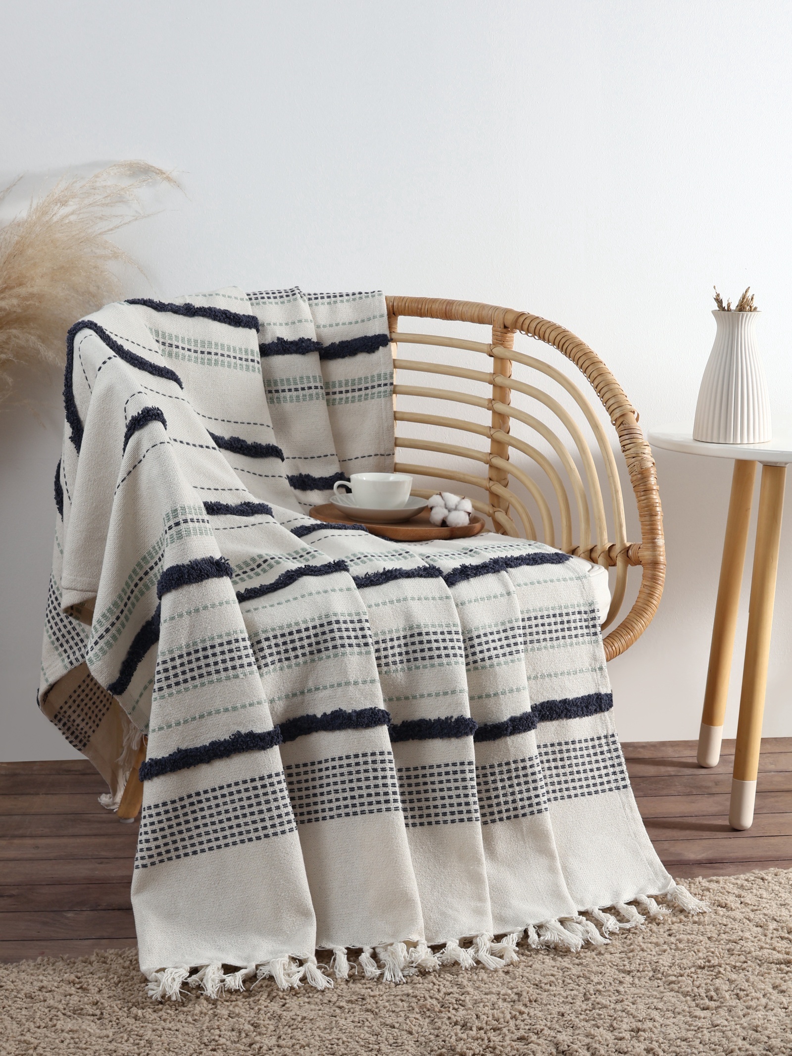 Плед с кисточками «этель», с таффтингом, 125 150 см, 550 г/м